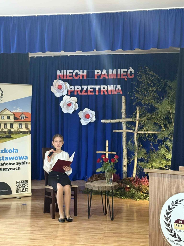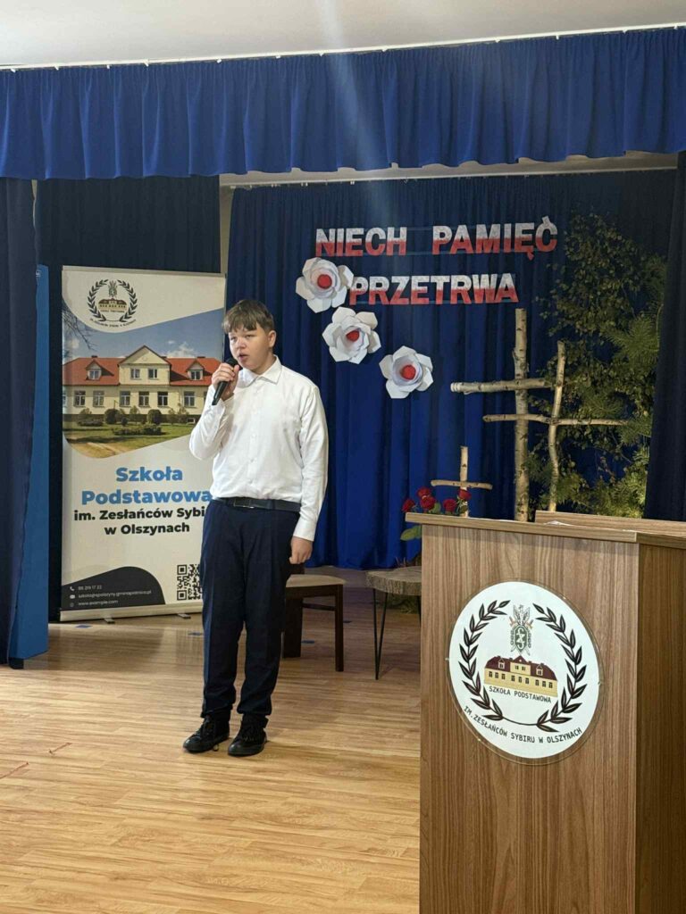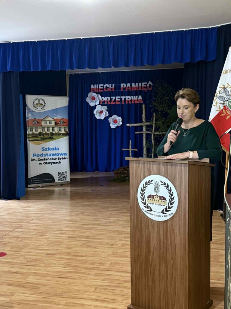 3 października w naszej szkole odbył się uroczysty apel upamiętniający Patrona – Zesłańców Sybiru. Wydarzenie miało niezwykle podniosły i refleksyjny charakter. Nauczyciele z wielkim zaangażowaniem przygotowali uczniów do występu, który wzruszył całą społeczność szkolną. Starsi uczniowie zaprezentowali część artystyczną z wierszami i wspomnieniami o losach Sybiraków, przypominając o ich odwadze, cierpieniu i niezłomności. Młodsi uczniowie uświetnili uroczystość pięknym tańcem ze wstążkami. Podczas apelu głos zabrała Pani Dyrektor, która podkreśliła znaczenie pielęgnowania pamięci o Sybirakach oraz potrzebę przekazywania młodszym pokoleniom wartości takich jak patriotyzm, solidarność i szacunek dla historii. Wśród zaproszonych gości znaleźli się m.in. pani Jolanta Hryniewicz oraz pani Wanda Kościuczuk, którym serdecznie dziękujemy za obecność i wspólne przeżywanie tej ważnej uroczystości. Na zakończenie apelu cała społeczność szkolna wspólnie odśpiewała pieśń patriotyczną, oddając w ten sposób hołd wszystkim zesłańcom i ofiarom Sybiru. Dźwięki pieśni wypełniły salę, tworząc atmosferę jedności, wzruszenia i głębokiego szacunku. Po zakończeniu uroczystości delegacja szkoły udała się na miejscowy cmentarz, gdzie złożono kwiaty i zapalono znicze na grobach lokalnych Sybiraków – pani Rogińskiej, pani Karczewskiej i pana Kortowskiego. Był to dzień pełen refleksji i wdzięczności – dzień, w którym wspólnie uczciliśmy pamięć tych, którzy mimo trudnych doświadczeń Sybiru zachowali wiarę, nadzieję i miłość do Ojczyzny.