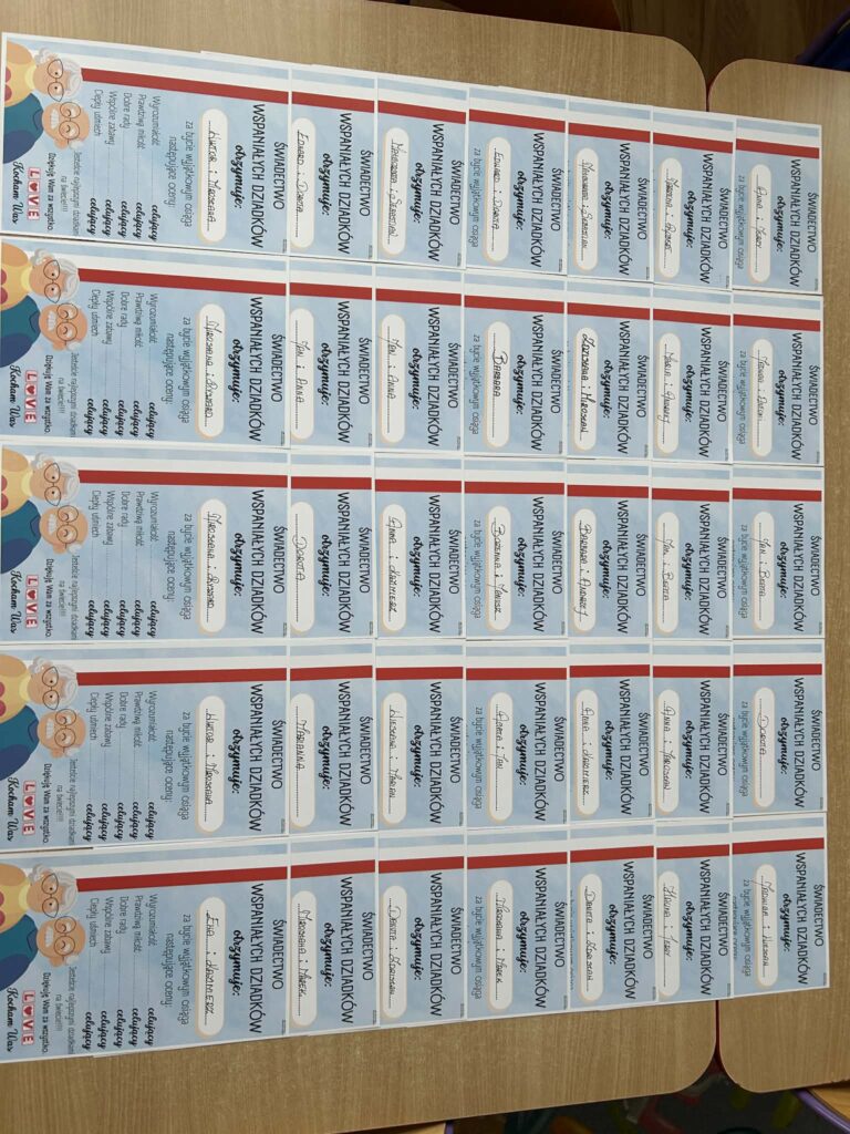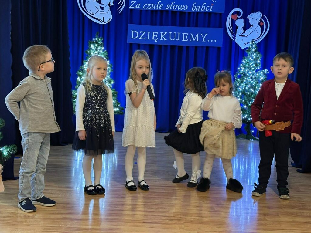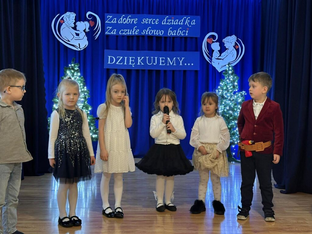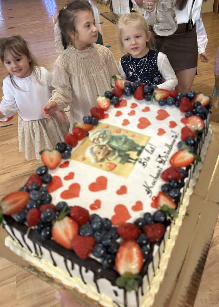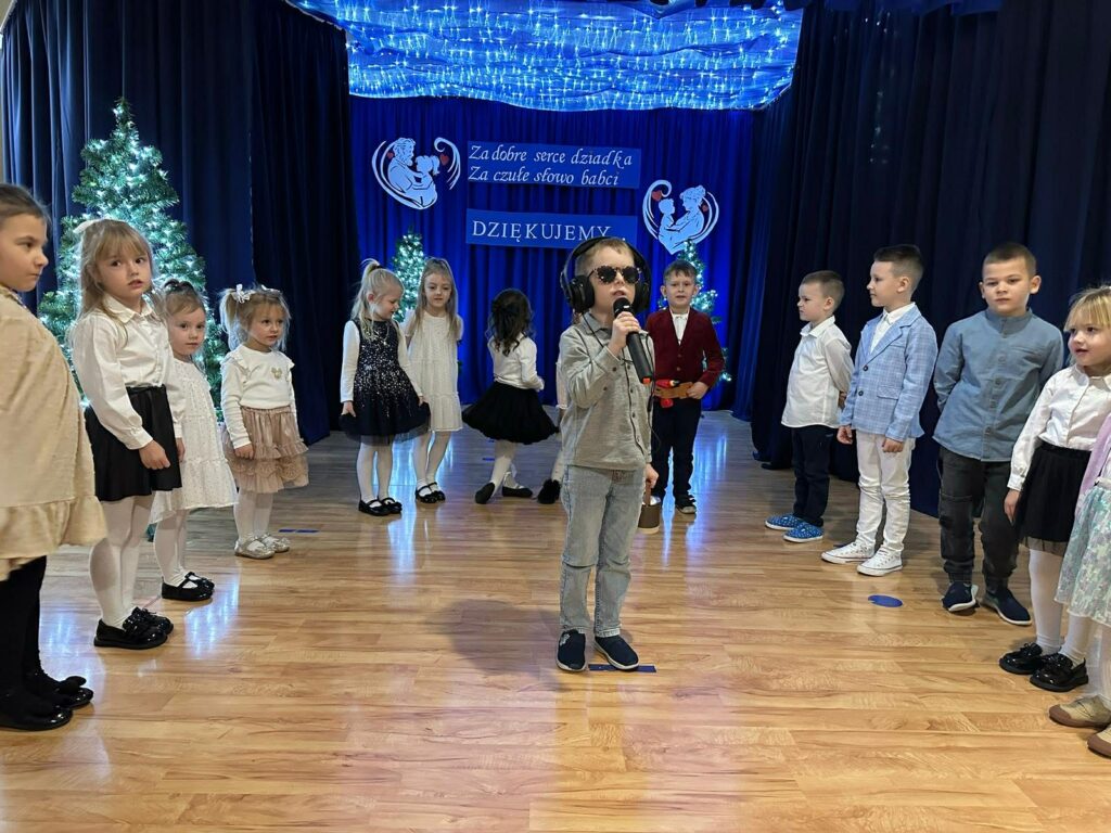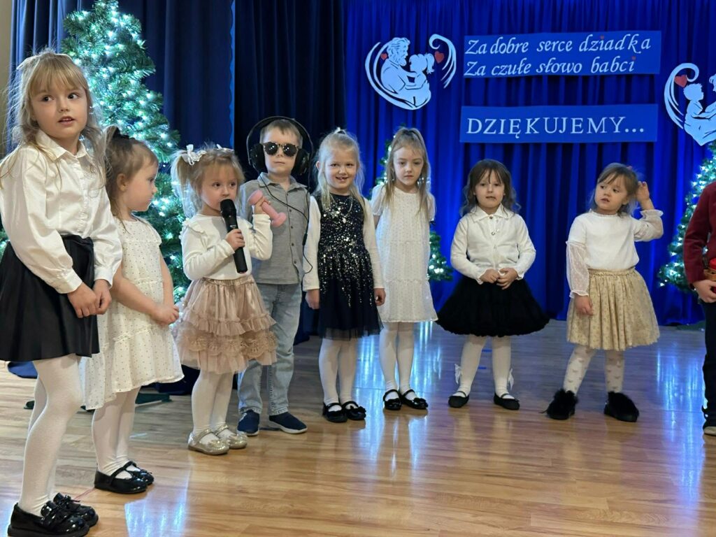W piątek odbył się Dzień Babci i Dziadka. Z tej wyjątkowej okazji wnuczęta przygotowały cudowny występ dla swoich kochanych babć i dziadków. Scenariusz przedstawienia nawiązywał do nowoczesności oraz świata mediów społecznościowych – TikToka, Facebooka i Instagrama. Dzieciaki wcieliły się w różne role, pokazując w zabawny i pomysłowy sposób, jak wygląda współczesny świat. Panowała cudowna atmosfera pełna rozmów i pogaduszek. Nie zabrakło również słodkiego poczęstunku przygotowanego przez rodziców oraz wspaniałego tortu. Na zakończenie odbyły się tańce dziadkowie bawili się znakomicie! Tańce były pełne radości, śmiechu i pozytywnej energii!!! Już dziś zapraszamy za rok !!