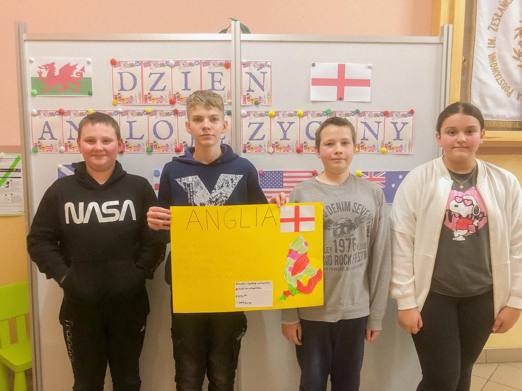 25 marca 2024r.  w naszej szkole odbył się Dzień Anglojęzyczny. Wzięli w nim udział uczniowie klas 4-8. Mieli oni za zadanie rozwiązać w grupach quiz o krajach, w których ludzie posługują się językiem angielskim, korzystając z informacji umieszczonych w różnych miejscach sali. Uczniowie byli bardzo zaangażowani i pełni energii podczas wykonywania tego zadania. Następnie w tych samych grupach stworzyli plakaty przedstawiające wylosowany przez nich kraj anglojęzyczny. Był to dzień pełen zabawy i pozytywnych wrażeń.