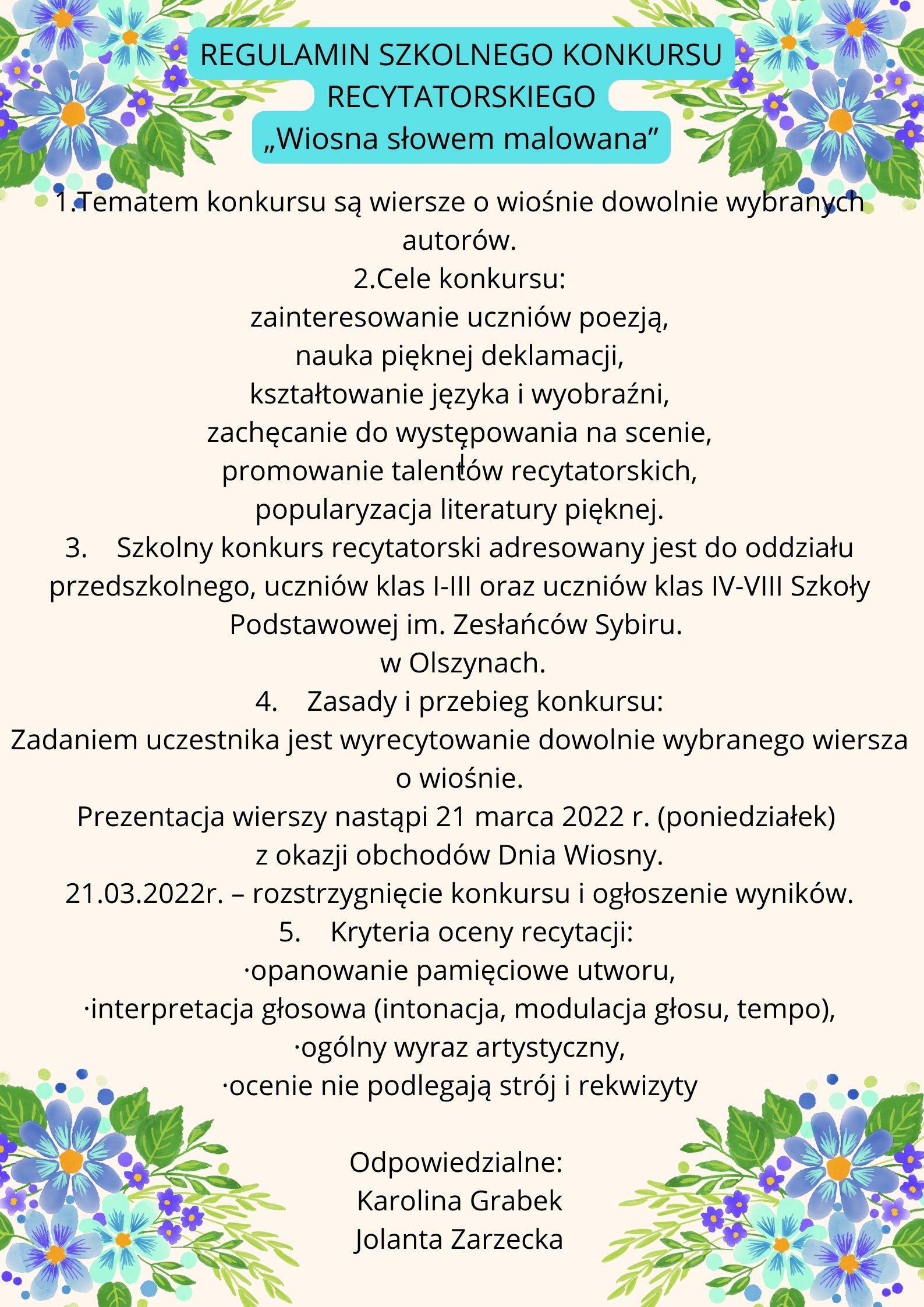 • przesłać pocztą na adres: Szkoła Podstawowa w Olszynach, ul. Wiśniowa 19, 18-421 Piątnica Poduchowna