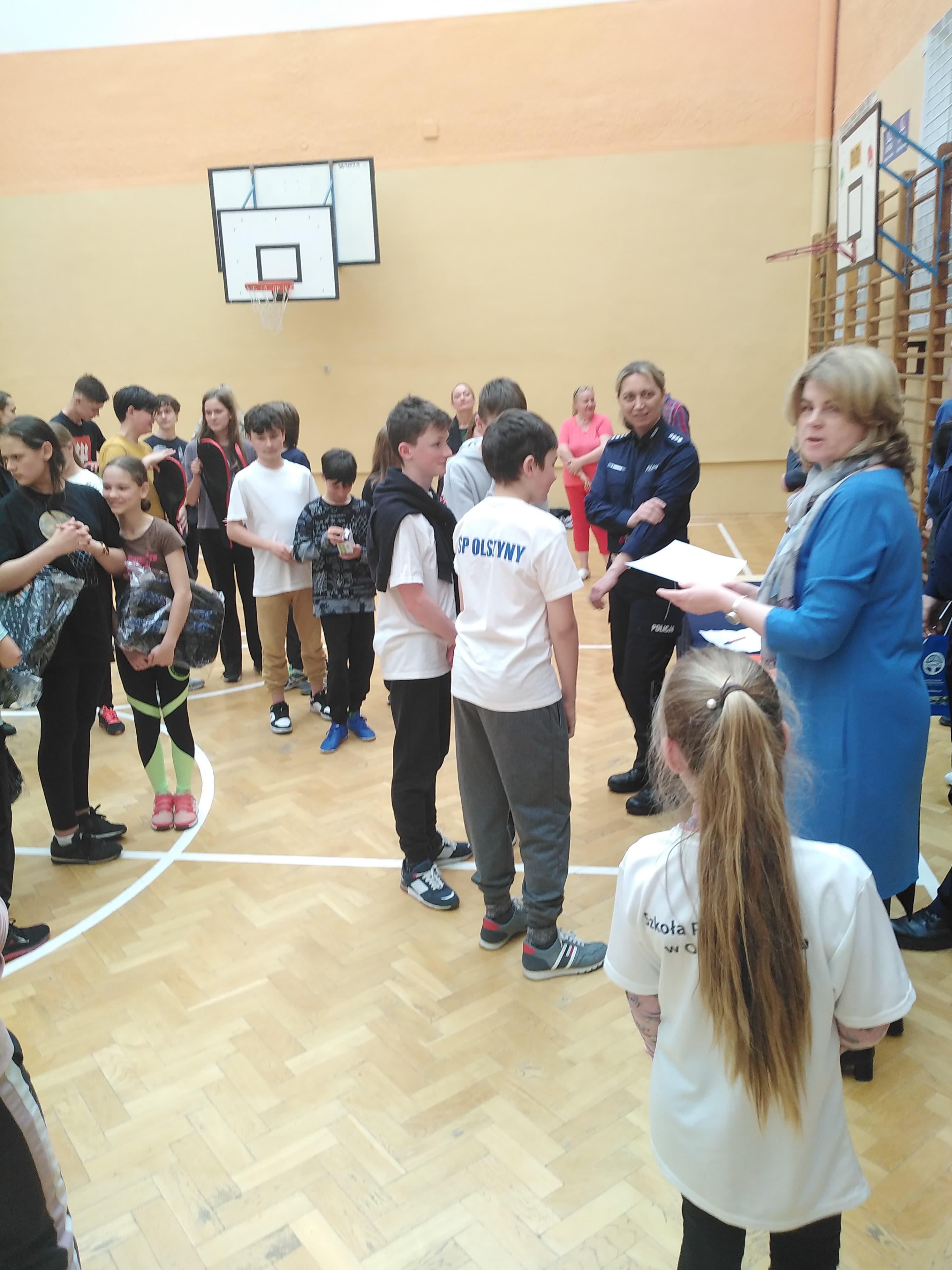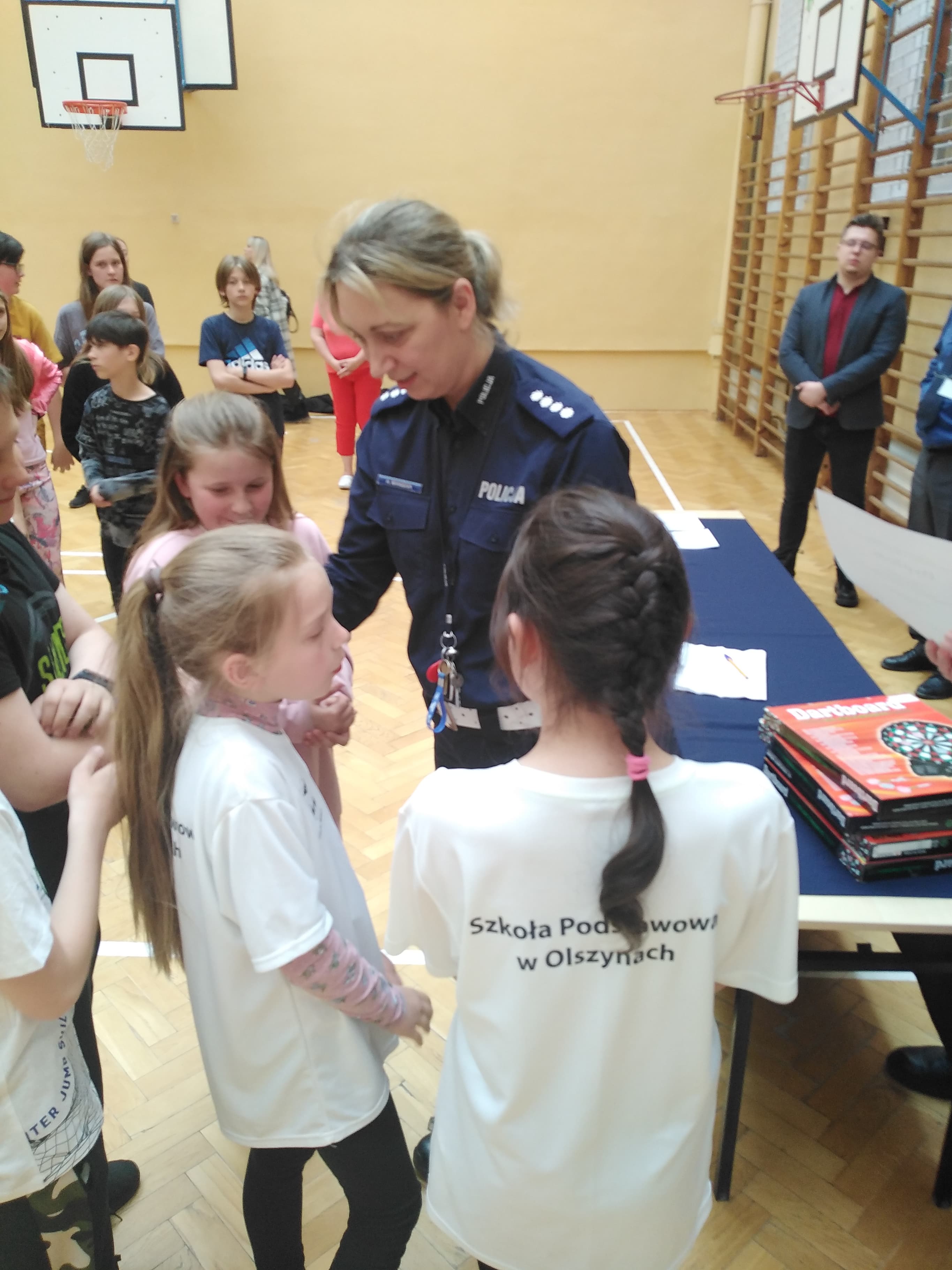 Uczestnicy mieli za zadanie rozwiązać test teoretyczny z zakresu przepisów ruchu drogowego, następnie musieli wykazać się umiejętnością udzielania pierwszej pomocy przedmedycznej. Kolejnym etapem zmagań był test praktyczny, czyli jazda rowerem po wyznaczonym torze przeszkód.  Uczniowie z SP w Olszynach zdobyli drużynowo I miejsca w obu grupach wiekowych.