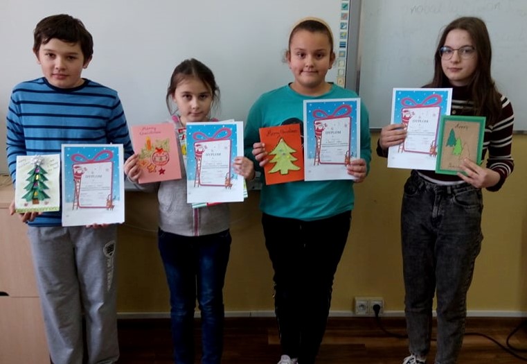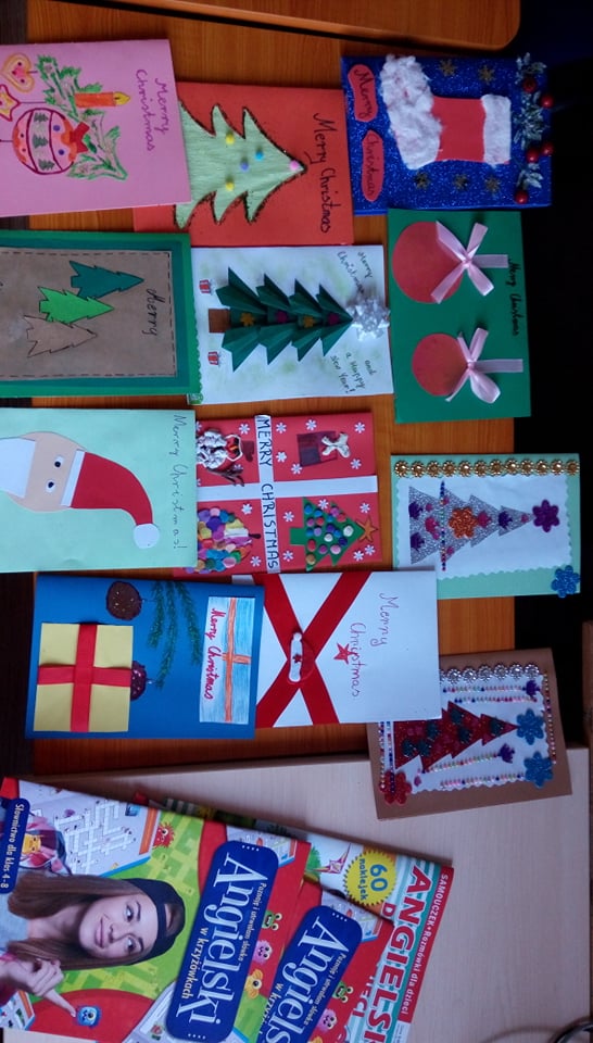 W naszej szkole odbył się konkurs plastyczny na kartkę świąteczną z życzeniami w języku angielskim dla klas I-VIII. Uczniowie miło nas zaskoczyli i z wielkim zaangażowaniem przygotowali kartki świąteczne z życzeniami. Organizator konkursu p. Katarzyna Maksińska, nauczyciel j. angielskiego wraz z komisją konkursową: p. Elżbieta Znoińska, nauczyciel edukacji wczesnoszkolnej i p. Małgorzata Zachłowska, nauczyciel edukacji przedszkolnej, postanowiły wyróżnić najładniejsze prace plastyczne wykonane przez uczniów naszej szkoły. Oto wyniki konkursu: