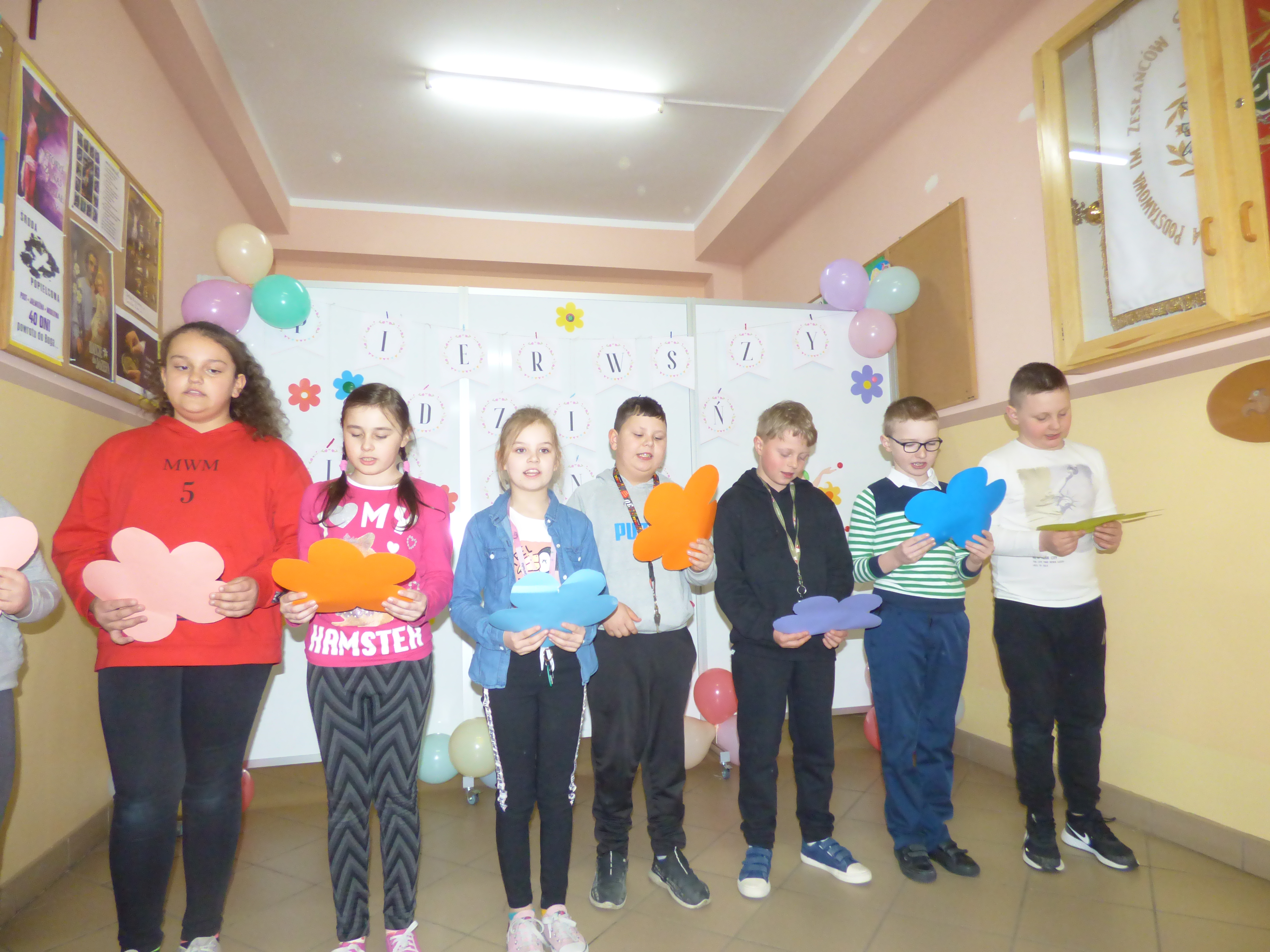 Dzisiaj całą szkołą świętowaliśmy Pierwszy Dzień Wiosny. Obchody tego święta były bardzo urozmaicone. Rozpoczęliśmy do konkursu recytatorskiego pt. „Wiosna słowem malowana”, następnie uczniowie mieli okazję popisać się swoimi talentami, a także pochwalić się wykonanymi EKO STROJAMI. Ten dzień to także doskonała okazja, by zamienić tradycyjne plecaki na inne „nosidła”. Trzeba przyznać, że nasi uczniowie byli bardzo kreatywni. Powstały również piękne rysunki Pani Wiosny. Na zakończenie uczniowie w dwóch zespołach zmierzyli się z zadaniami polonistycznymi nawiązującym swoją tematyką do Pierwszego Dnia Wiosny. To był wyjątkowy dzień. Wszystkim uczestnikom serdecznie dziękujemy. Zapraszamy do fotorelacji!