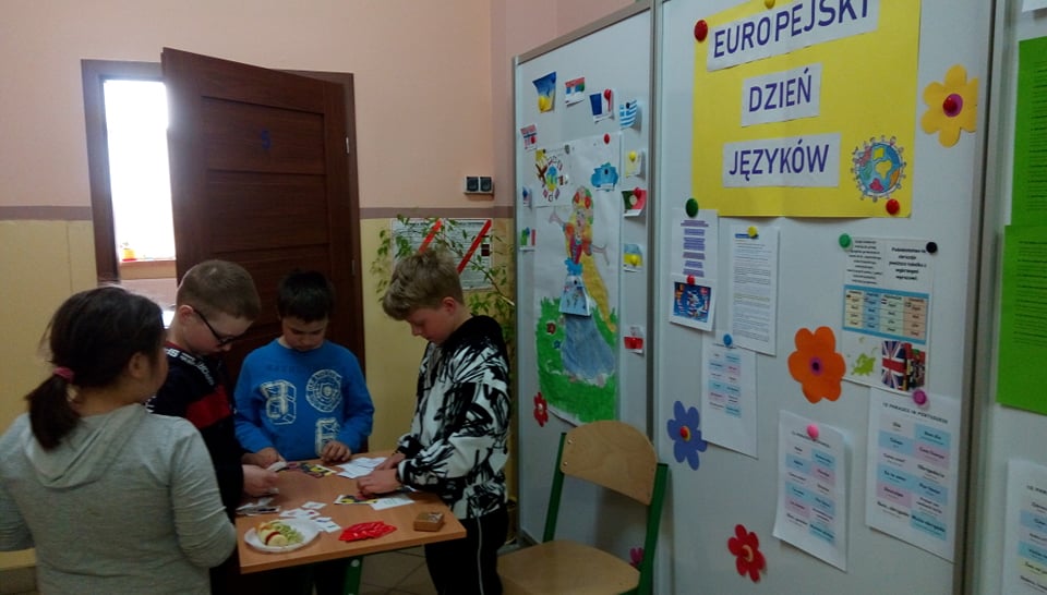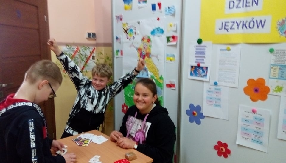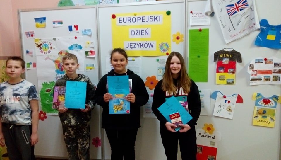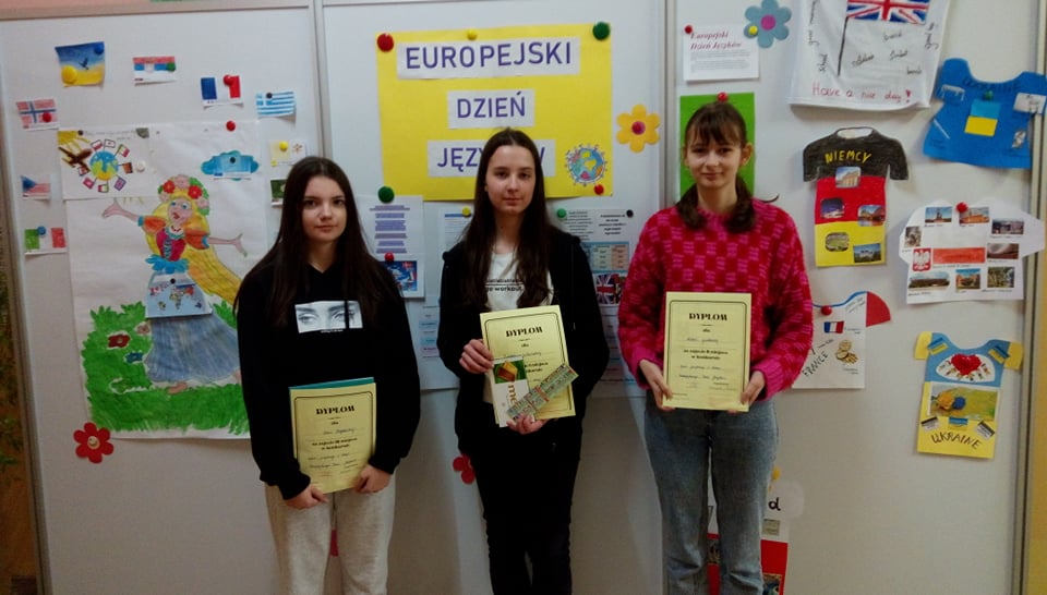 Jak co roku obchodziliśmy w naszej szkole Dzień Języków Obcych. Ideą przyświecającą temu wydarzeniu jest motywowanie uczniów do nauki języków obcych. Nauczyciel j. angielskiego pani Katarzyna Maksińska wraz z uczniami stworzyła m.in. gry dydaktyczne, quizy i fiszki do nauki słówek w różnych językach obcych, znajdujące się na stoiskach językowych w holu szkoły. Otwarta formuła wydarzenia umożliwiła uczniom dostęp do stoisk w celu poszerzania wiedzy z zakresu kultury państw europejskich zgodnie z zainteresowaniami. Natomiast podczas przerw międzylekcyjnych uczniowie mogli dodatkowo wysłuchać piosenek obcojęzycznych. Różnorodne formy zaprezentowanych atrakcji, takie jak prezentacja multimedialna, quizy językowe i kulturowe oraz konkursy zachęcały uczniów do poszerzania kompetencji językowych. W konkursie na logo koszulki propagującej jedność krajów Europy i różnorodność języków obcych I miejsce zdobyła Julia Konert, II miejsce Lena Laskowska, a III miejsce Klaudiusz Komorowski. Wszyscy mieli również okazję sprawdzić się w konkursie – quiz wiedzy na temat znajomości języków i kultury krajów europejskich. O to zwycięzcy: I miejsce Izabela Sulkowska, II miejsce Natalia Gardocka, III miejsce Daria Bogdańska. Wszystkim laureatom serdecznie gratulujemy.