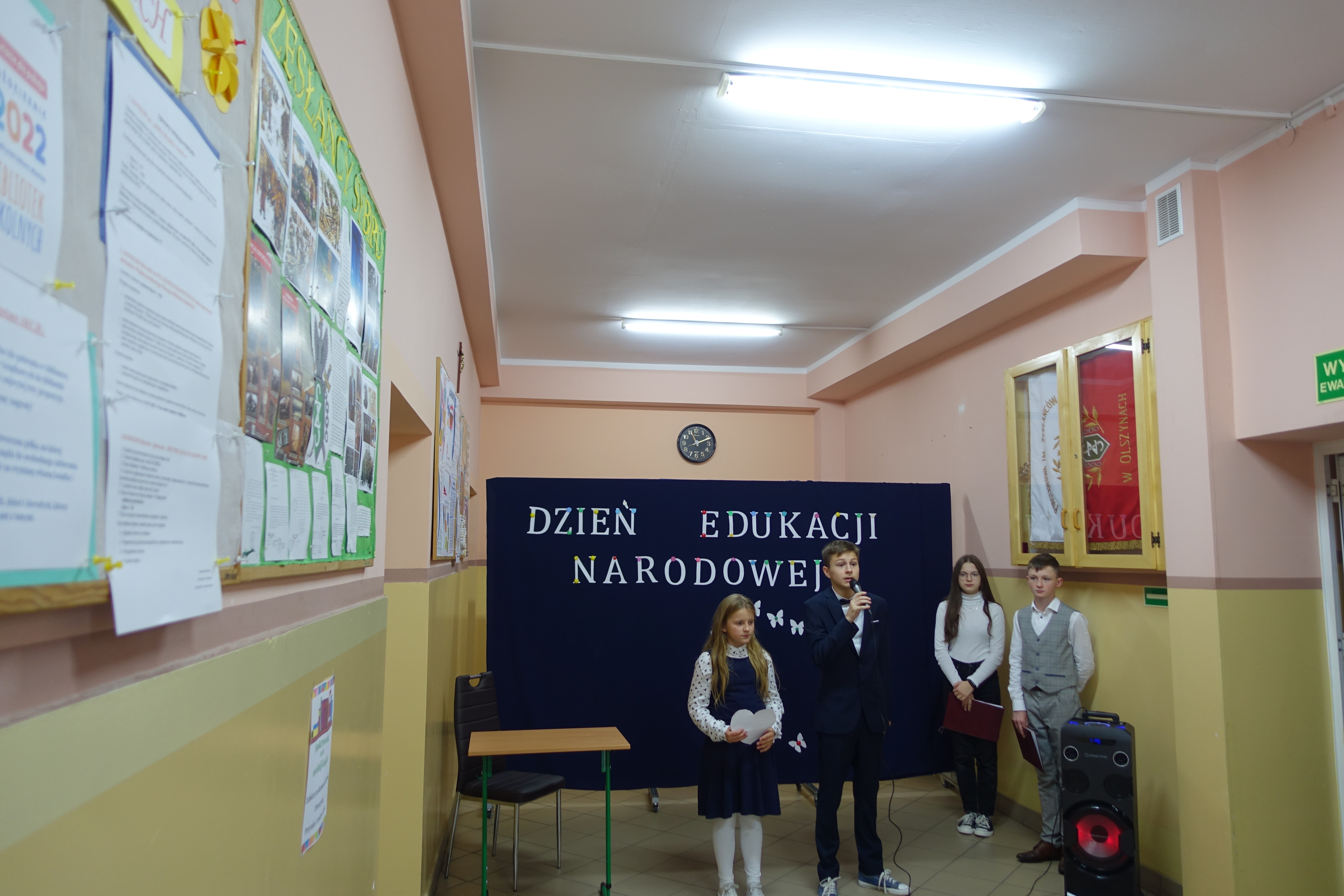 Trzynasty października 2022 roku to był dzień wyjątkowo uroczysty w naszej szkole gdyż odbyła się akademia z okazji Święta Komisji Edukacji Narodowej. Uczniowie naszej szkoły pod kierunkiem nauczycielek: pani Małgorzaty Bagińskiej i pani Katarzyny Maksińskiej przygotowali i zaprezentowali program artystyczny dedykowany wszystkim pracownikom szkoły. To czas, w którym przypominamy sobie, jak ważną rolę w naszym życiu odgrywają nauczyciele. Wierszyki radosne zostały z serca wypowiedziane, a piosenki głośno wyśpiewane. Uczennice klasy VIII odegrały też krótką, zabawną scenkę przedstawiającą początek roku szkolnego z punktu widzenia nauczycieli. Uczniowie kl. IV ułożyli i zaśpiewali piosenkę dla nauczycieli by radosna nasza kadra zawsze była. Po programie artystycznym, pani dyrektor Sylwia Pieńkowska rozdała nagrody nauczycielom i pozostałym pracownikom szkoły oraz złożyła życzenia z okazji ich święta.