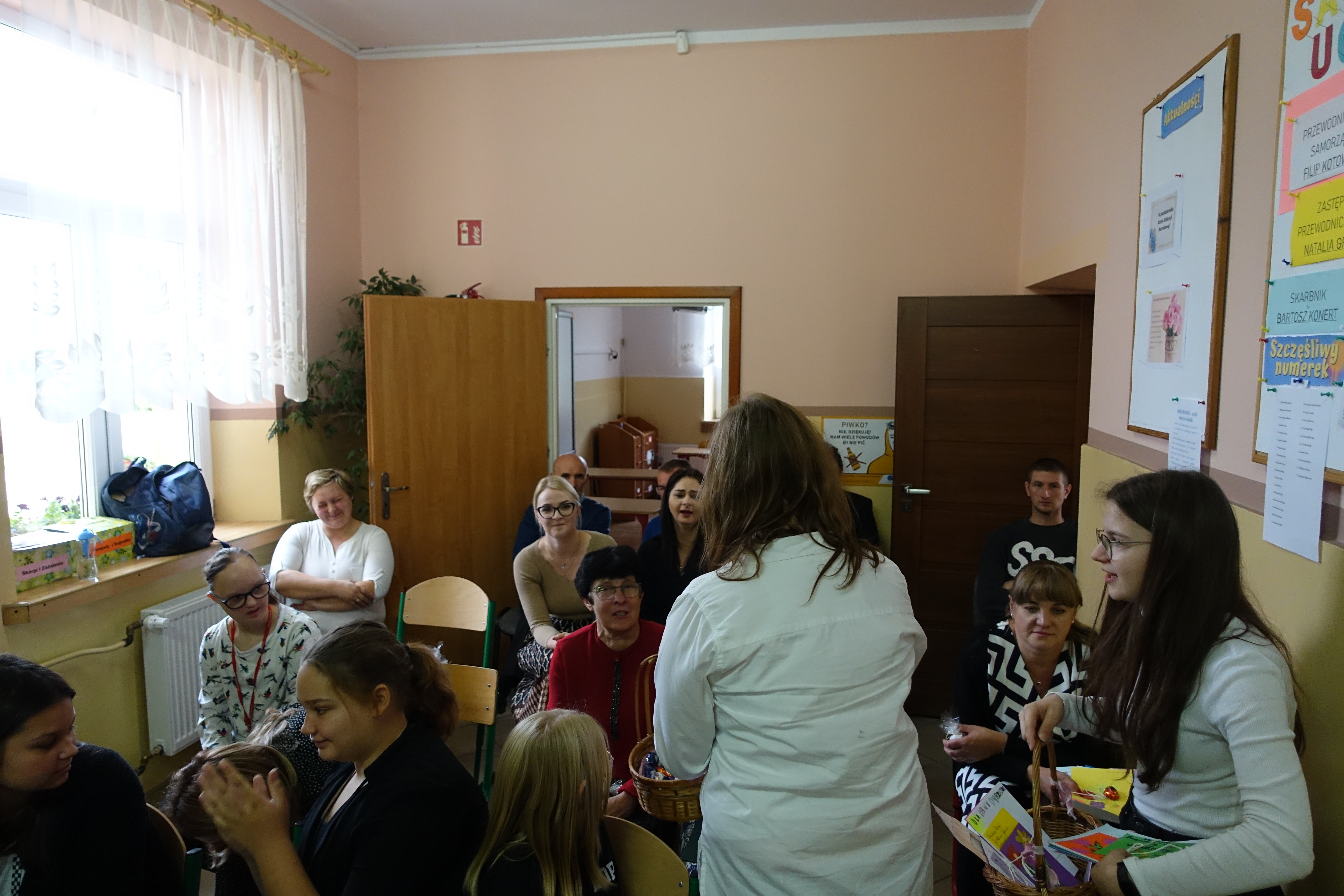 " Z okazji waszego Święta życzymy Wam serdecznie: aby uśmiech zawsze na Waszych twarzach gościł, aby takich wychowanków jak my każdy Wam zazdrościł..."