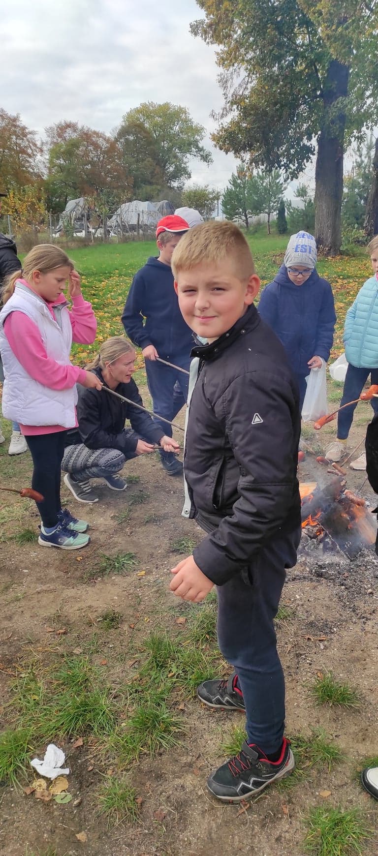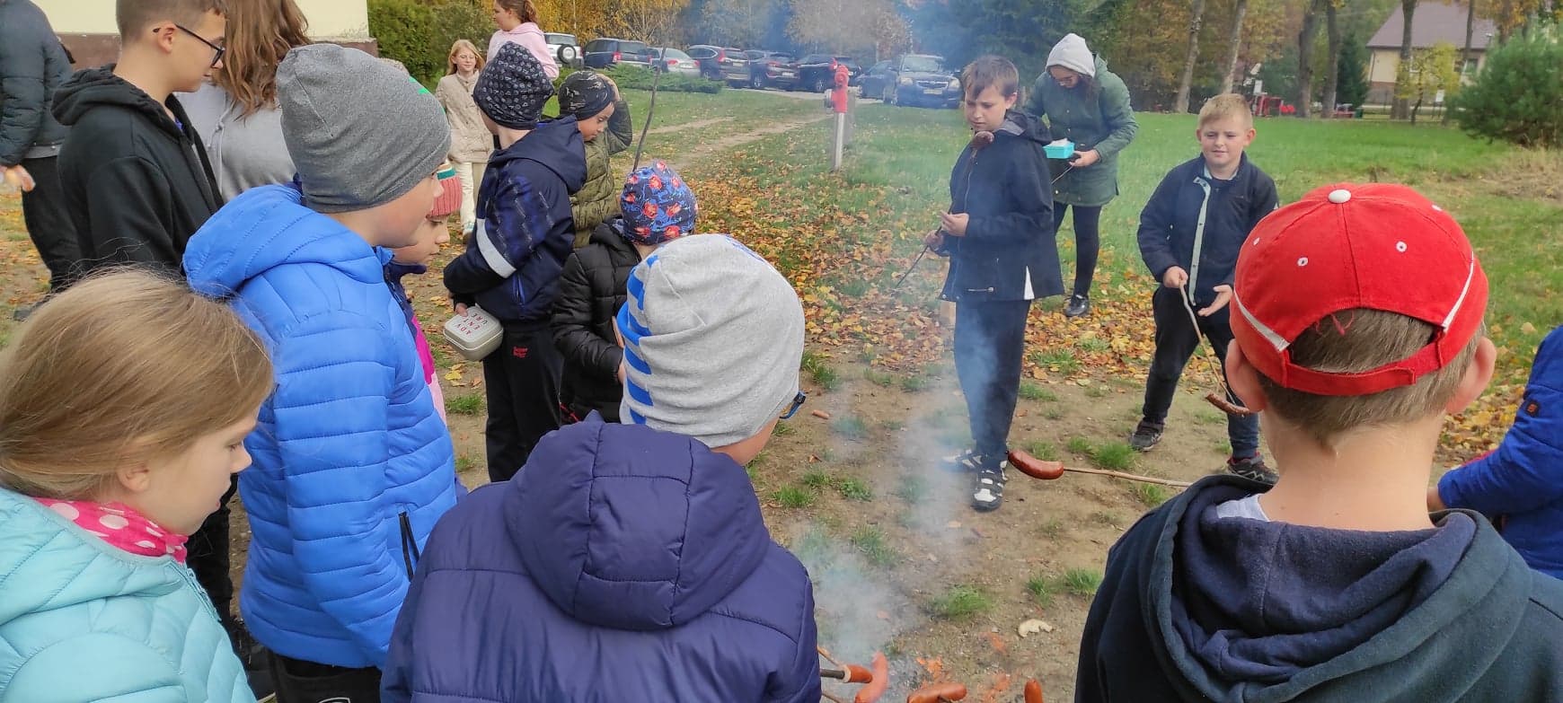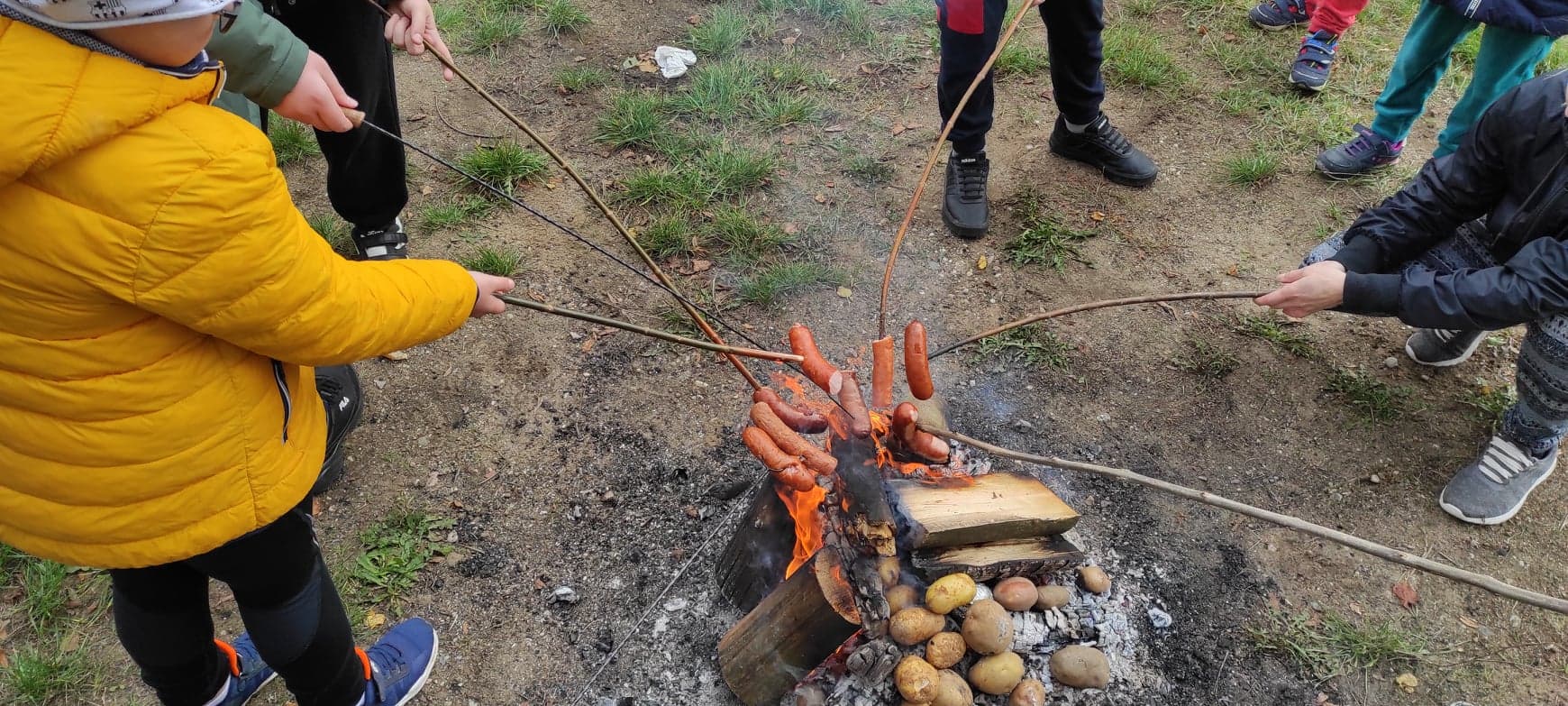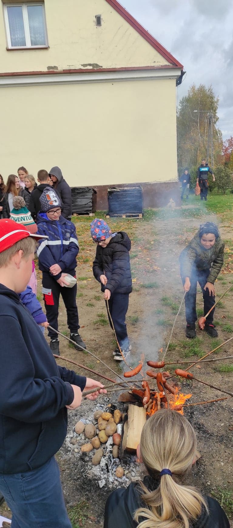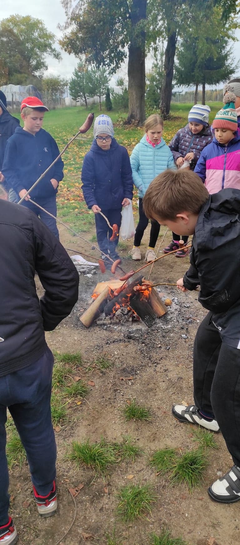 W czwartek obchodziliśmy w szkole Święto Pieczonego Ziemniaka. W tym dniu wszyscy przy ognisku zajadali się pieczonymi ziemniakami oraz kiełbaską.