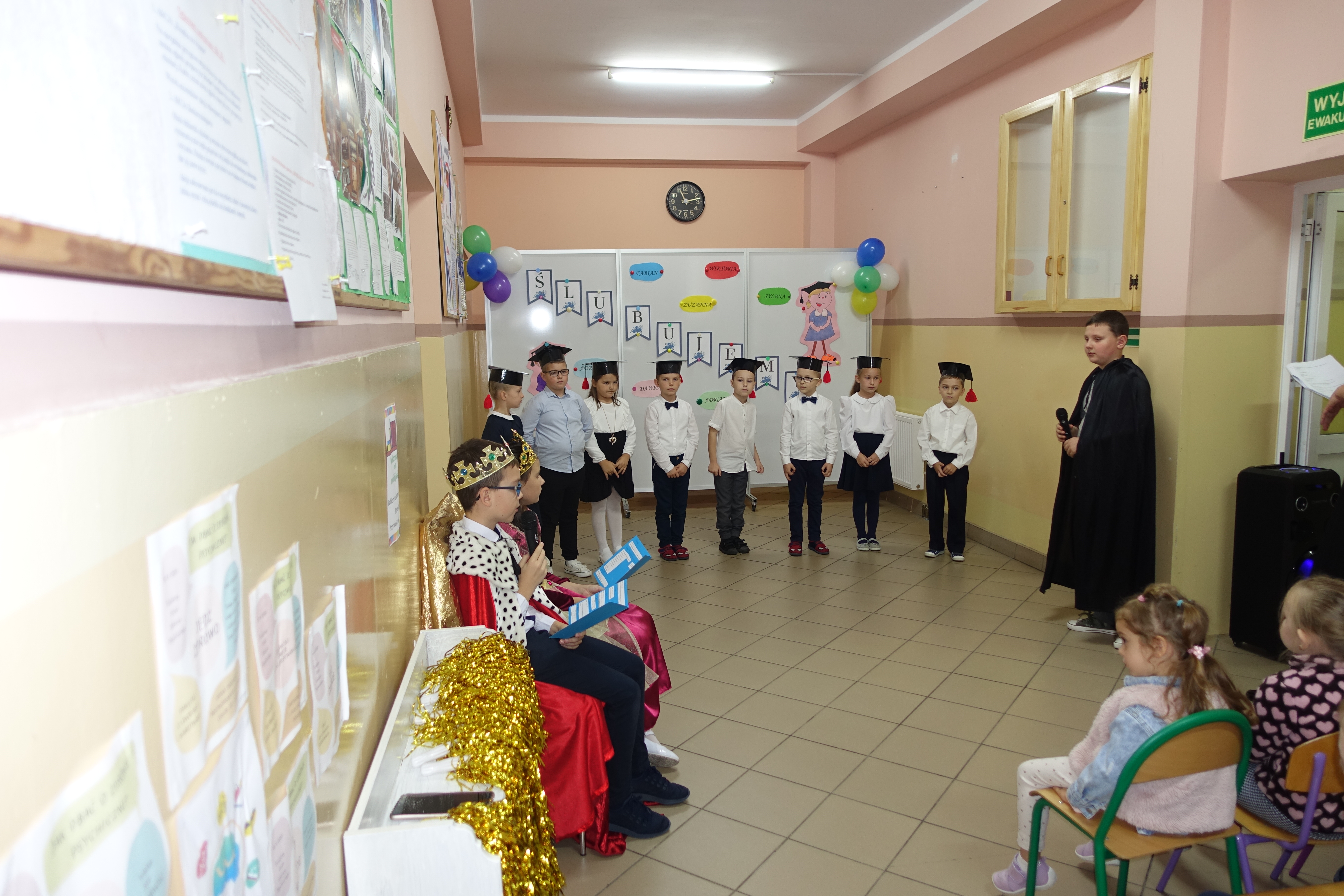26 października b.r. w naszej szkole odbyła się niezwykle ważna uroczystość, ślubowanie i pasowanie uczniów klasy pierwszej. Pierwszoklasiści w obecności Dyrekcji Szkoły, nauczycieli i  rodziców zaprezentowali krótki program artystyczny. Śpiewająco odpowiadali na pytania dotyczące naszej ojczyzny, szkolnej nauki oraz  zasad zachowania. Wszyscy zgodnie stwierdzili, że egzamin pięknie zdali i  mogą już zostać przyjęci do braci uczniowskiej. Następnie Pani Dyrektor dokonała aktu pasowania pierwszoklasistów. Uczniowie otrzymali pamiątkowe dyplomy i drobne upominki. Nie zabrakło również słodkiego poczęstunku.