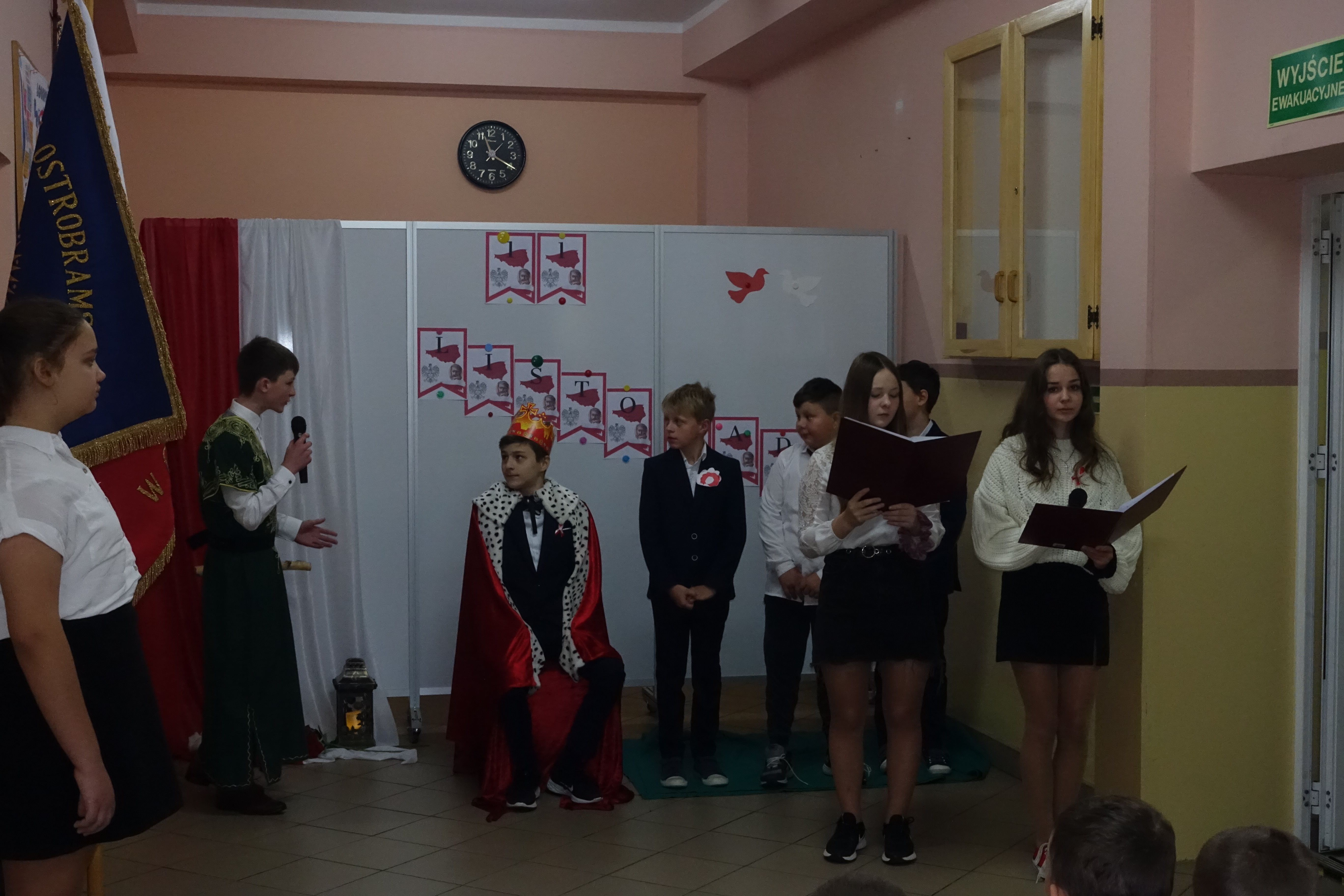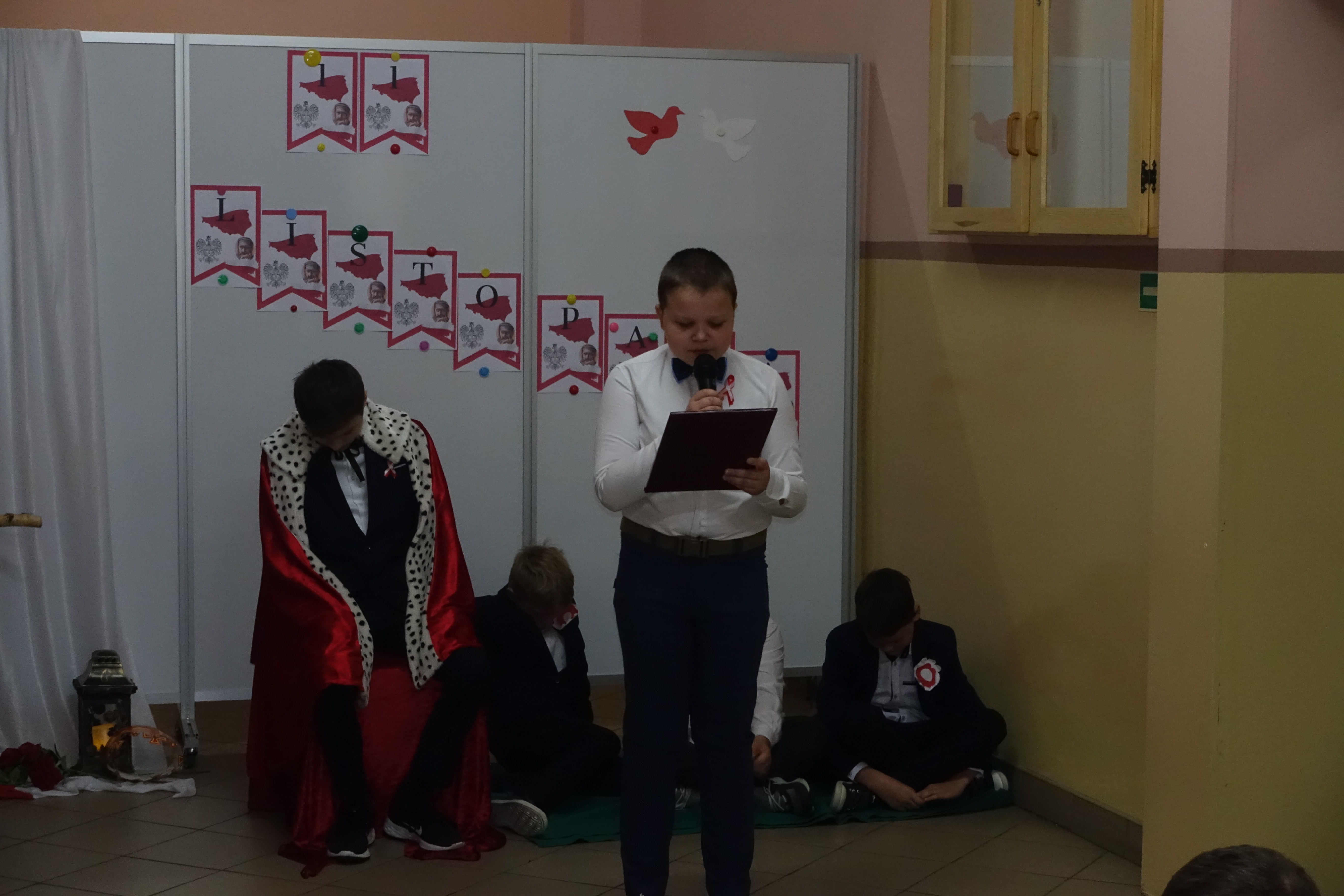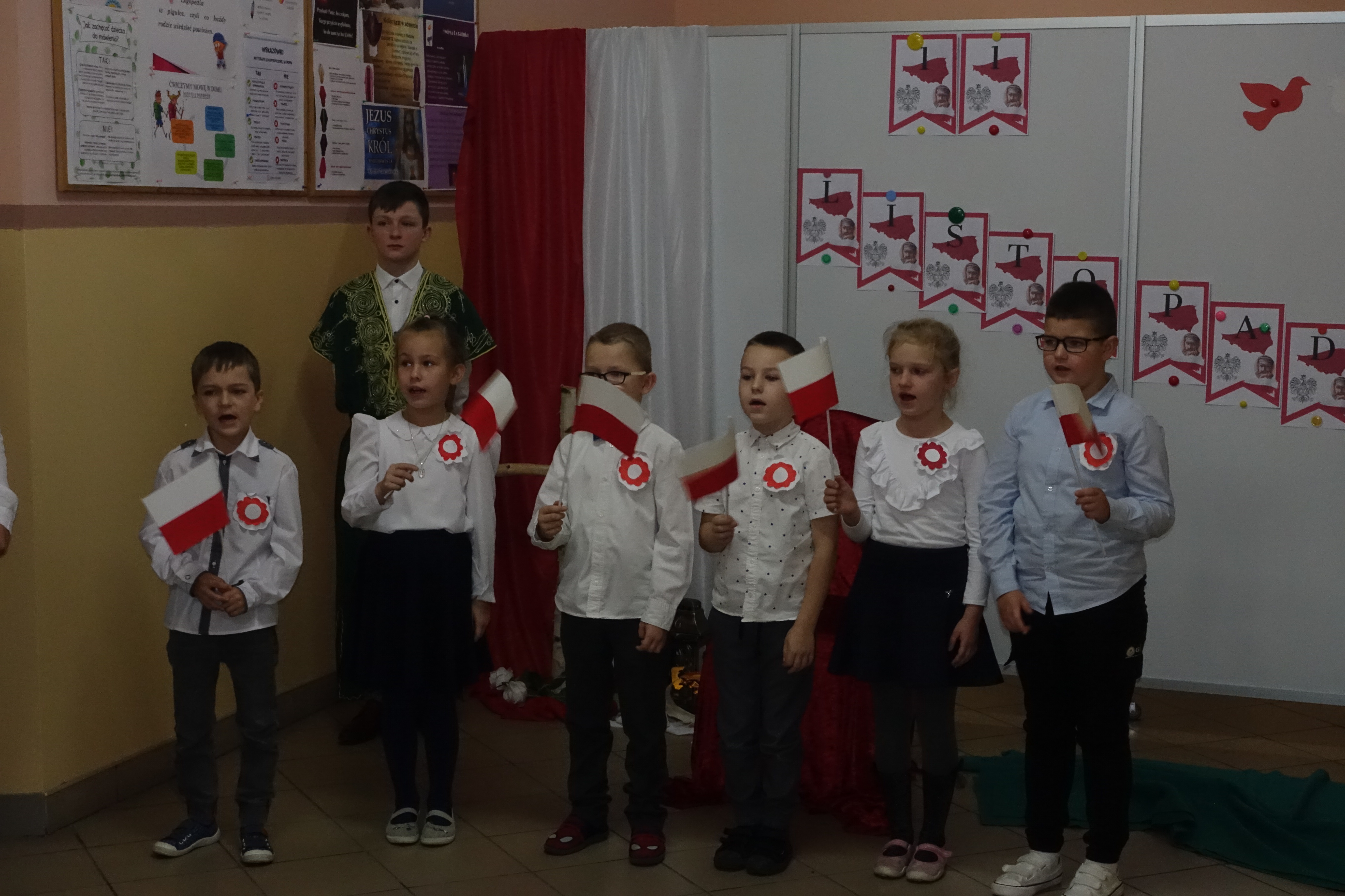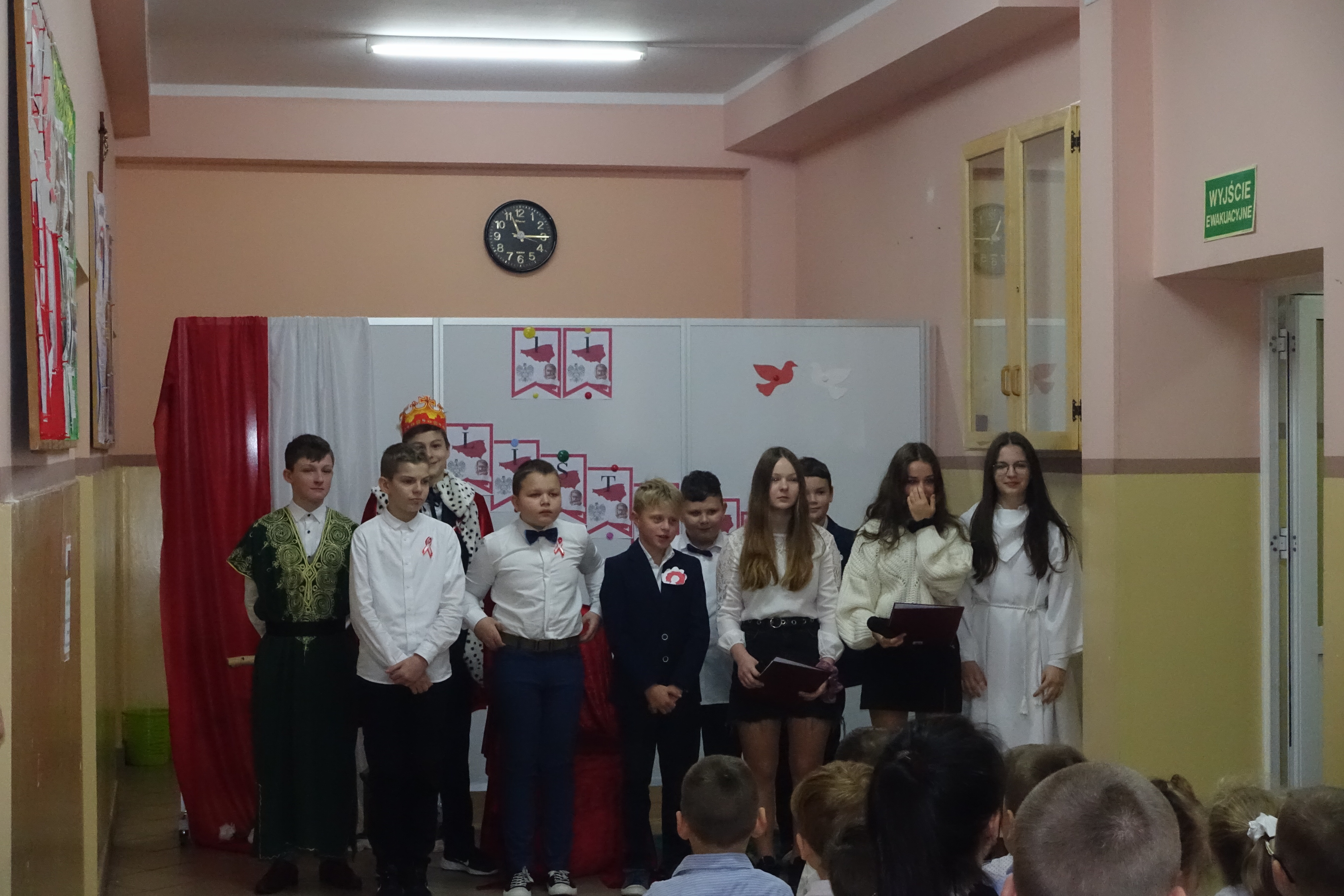 Narodowe Święto Niepodległości 9 listopada w naszej szkole odbył się uroczysty apel upamiętniający 104. rocznicę odzyskania przez Polskę niepodległości. Cała uroczystość rozpoczęła się od odśpiewania hymnu o symbolicznej godzinie 11:11. Społeczność uczniowska włączyła się tym samym w akcję "Szkoła do hymnu". Uczniowie w nietypowy sposób przedstawili ułamek historii, który ukazywał losy Polaków w walce o niepodległość. Apel uświetniły wiersze zaprezentowane przez uczniów naszej szkoły oraz utwory patriotyczne w ich wykonaniu.