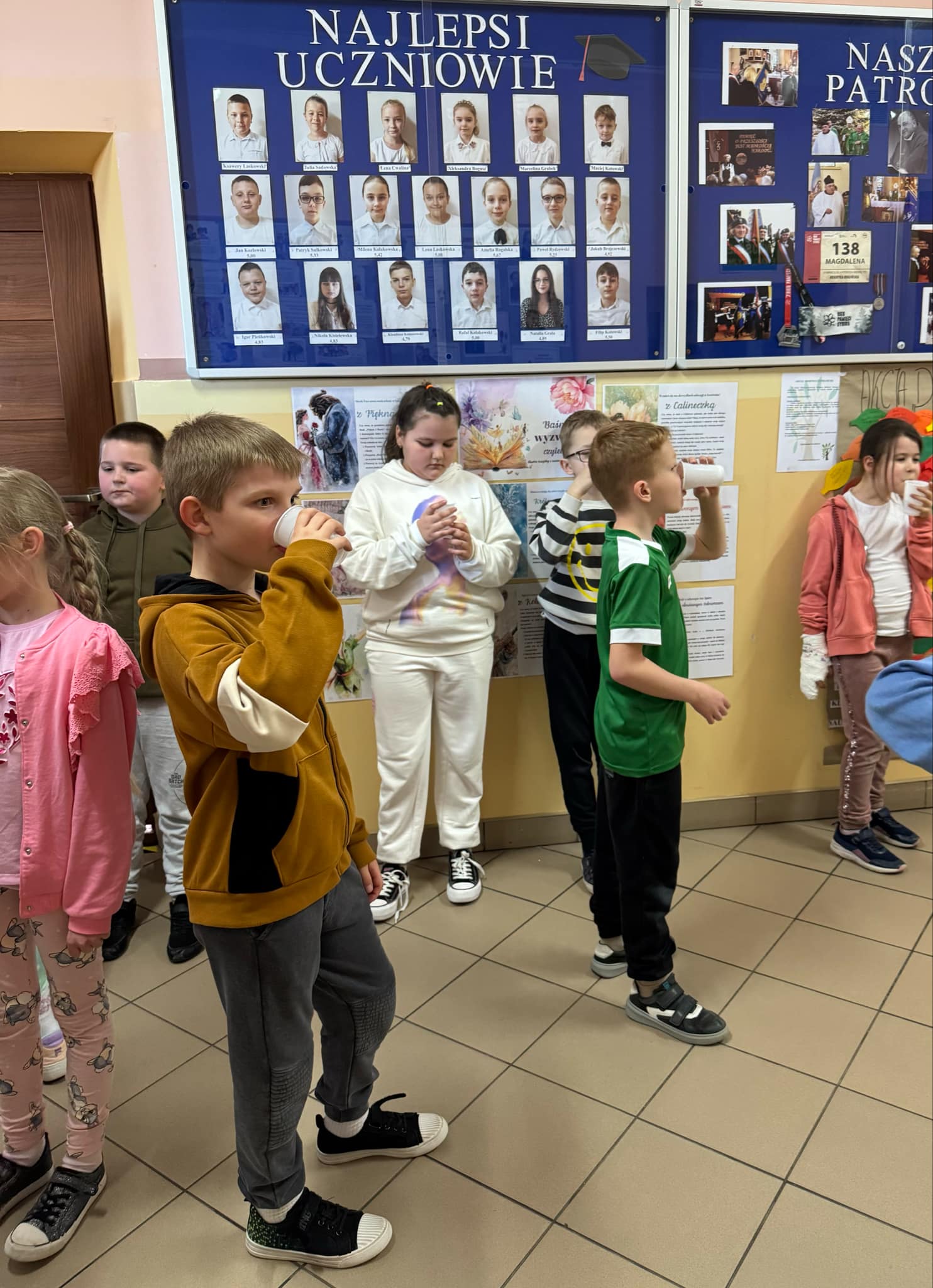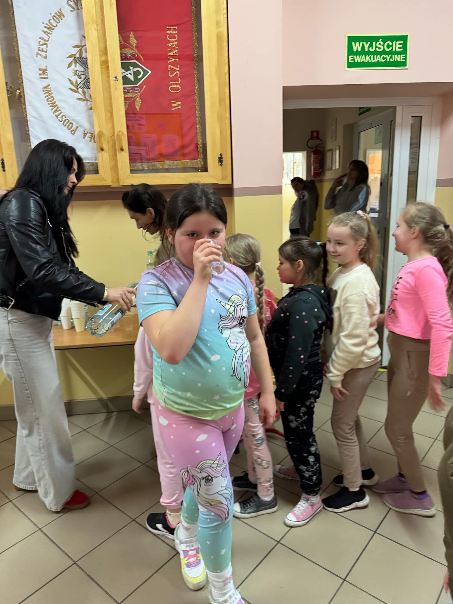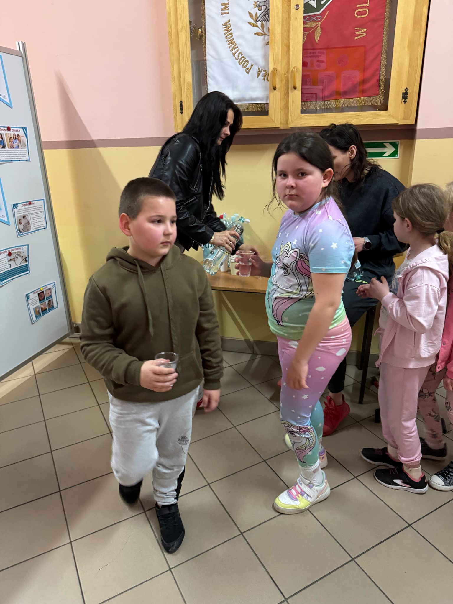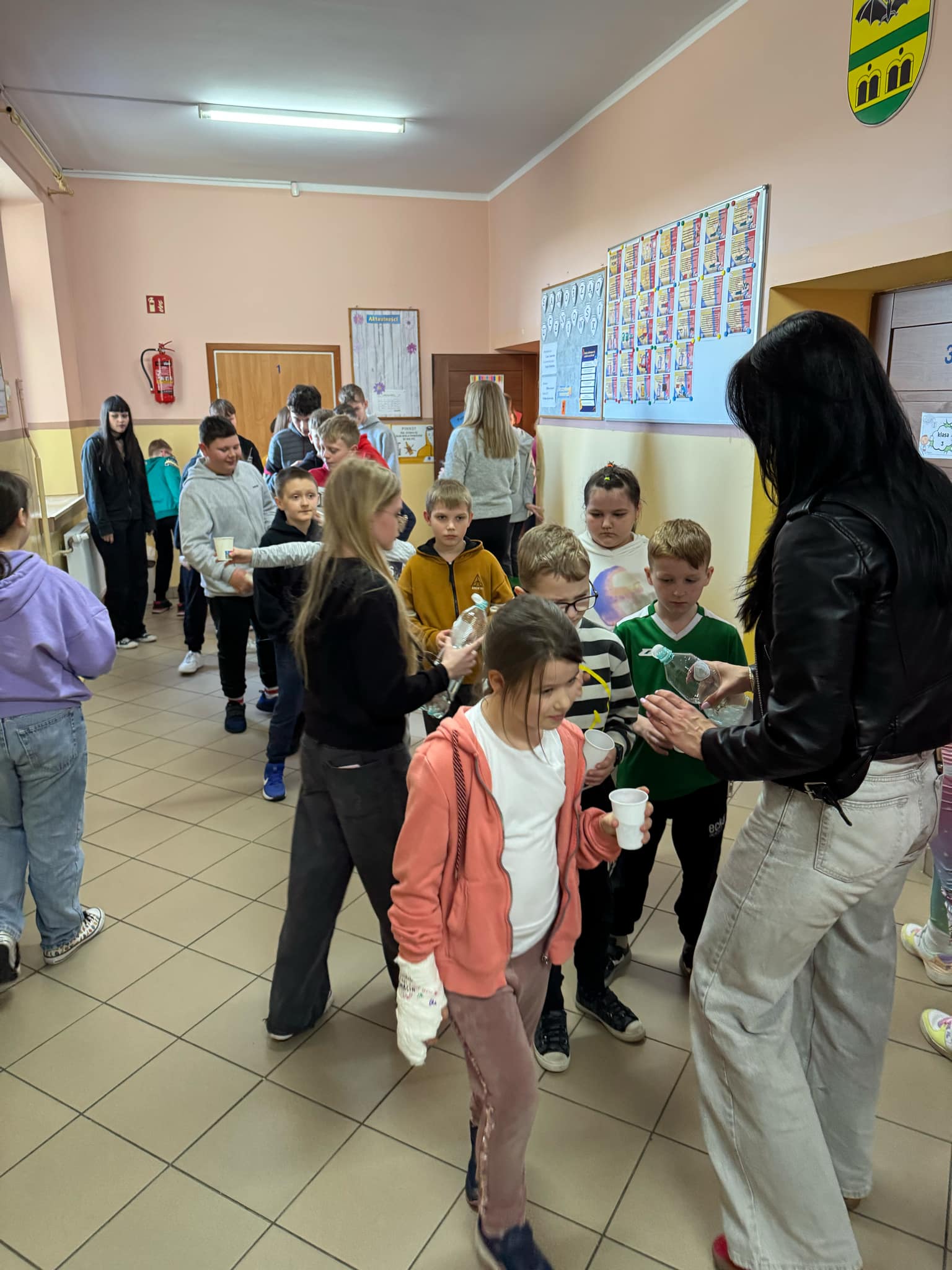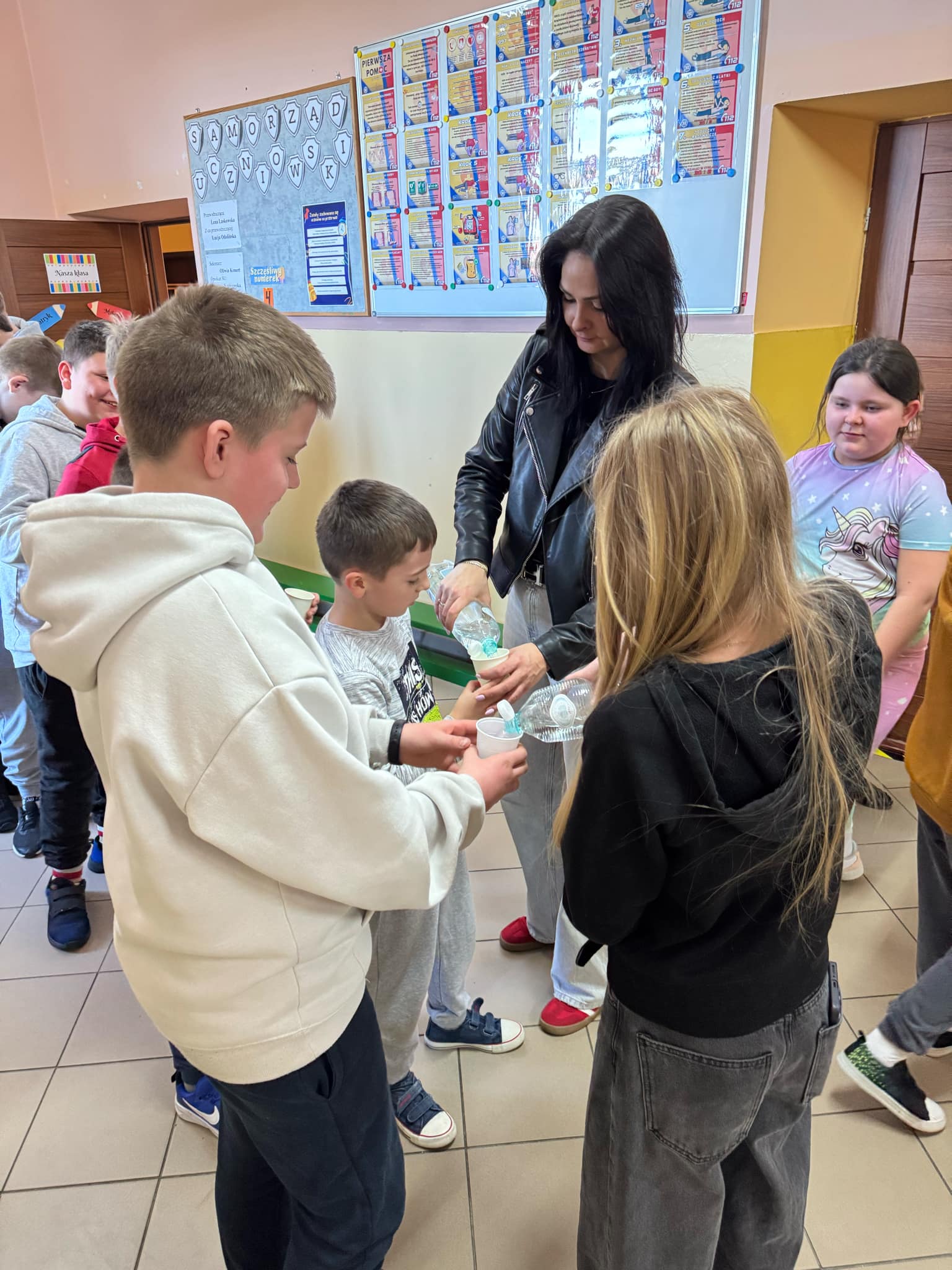 Z okazji tego dnia w naszej szkole uczniowie wzięli udział we wspólnej gimnastyce, która przypomniała, jak ważna jest codzienna aktywność fizyczna dla zdrowia i dobrego samopoczucia. Przez cały dzień promowano również picie wody – uczniowie zostali zachęceni do sięgania po zdrową alternatywę dla słodzonych napojów, co sprzyja nawodnieniu i koncentracji.