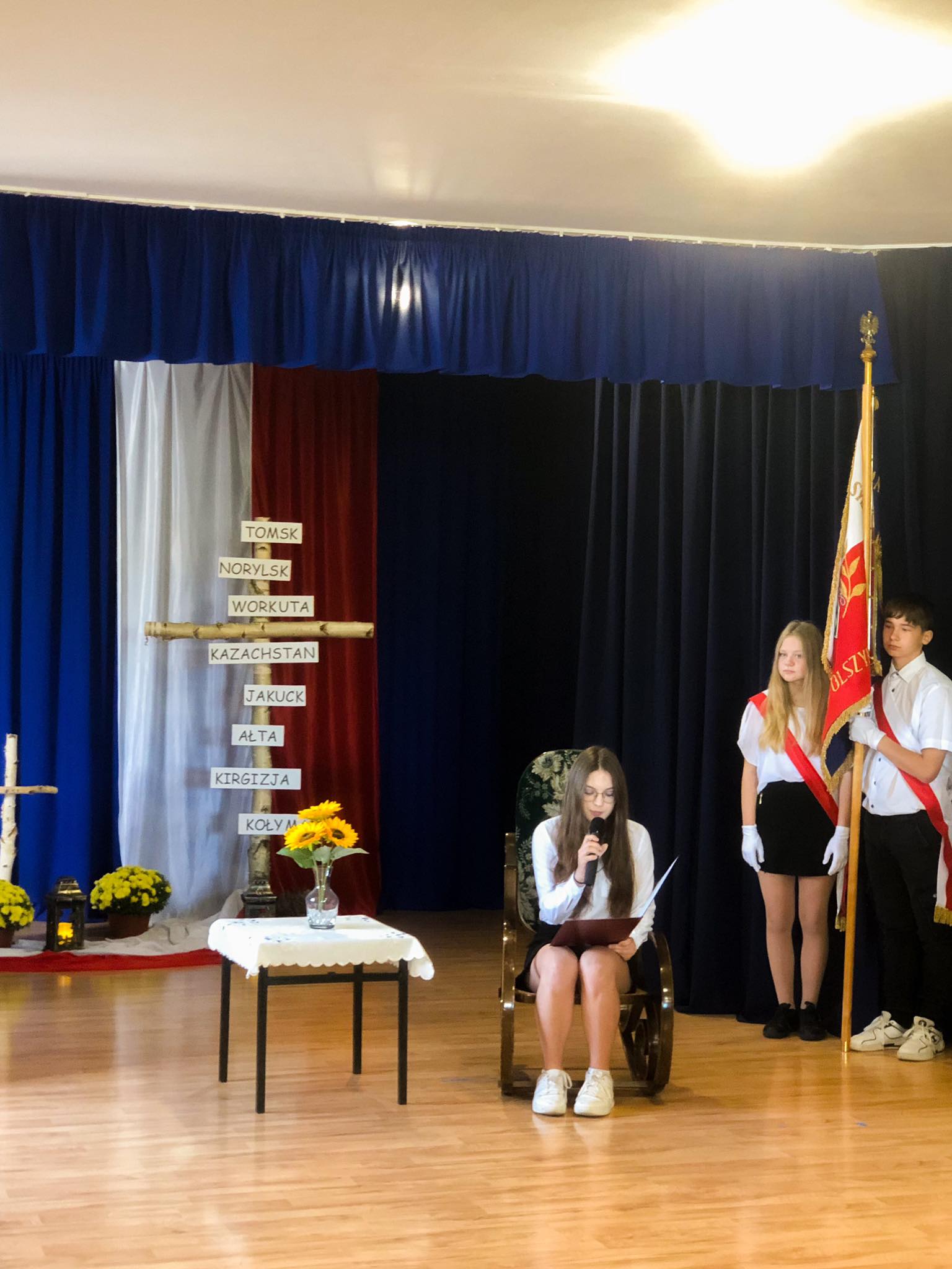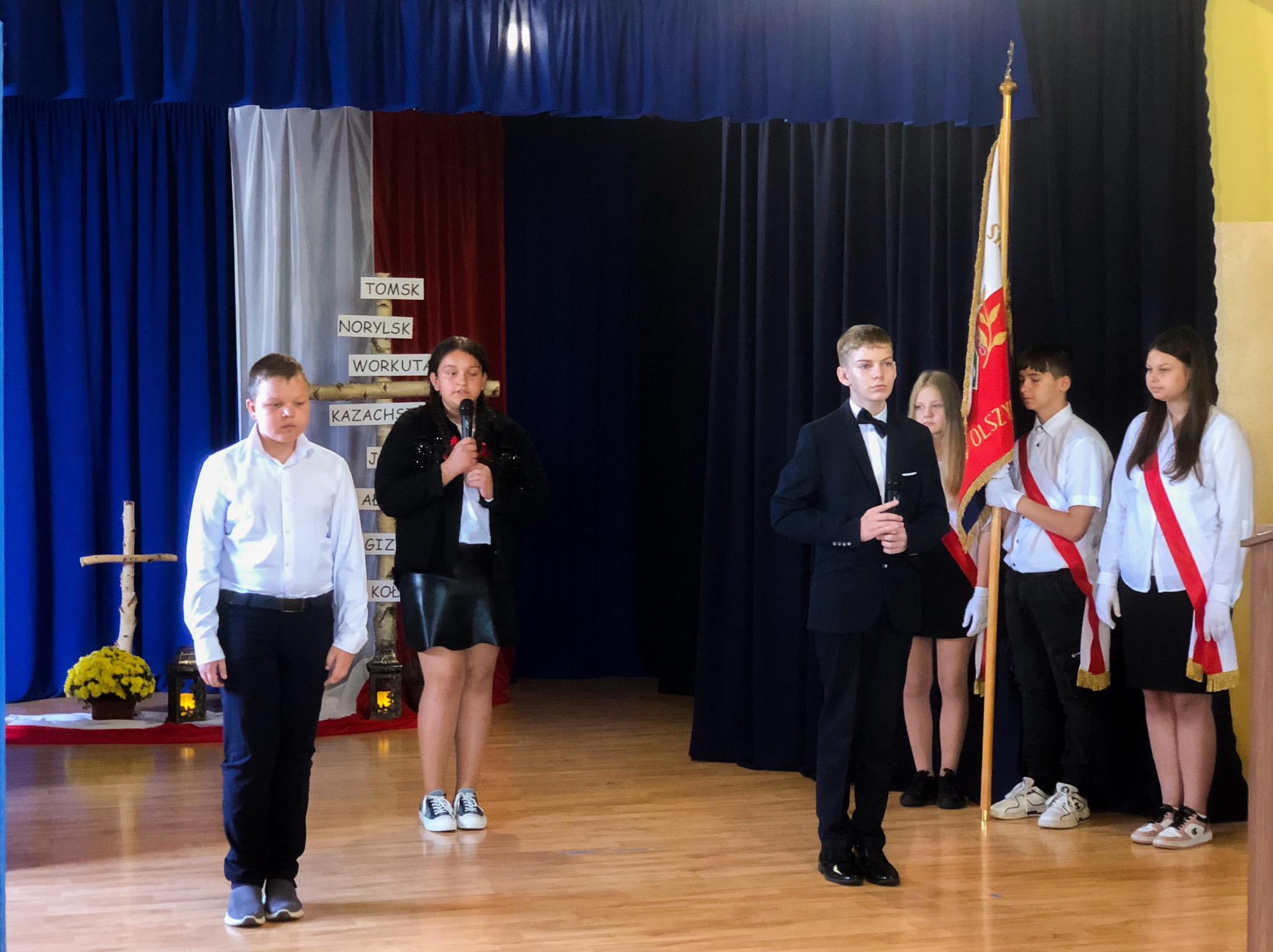 W tym roku uczniowie i nauczyciele przygotowali program artystyczny wspominając losy Sybiraków i oddając im hołd.