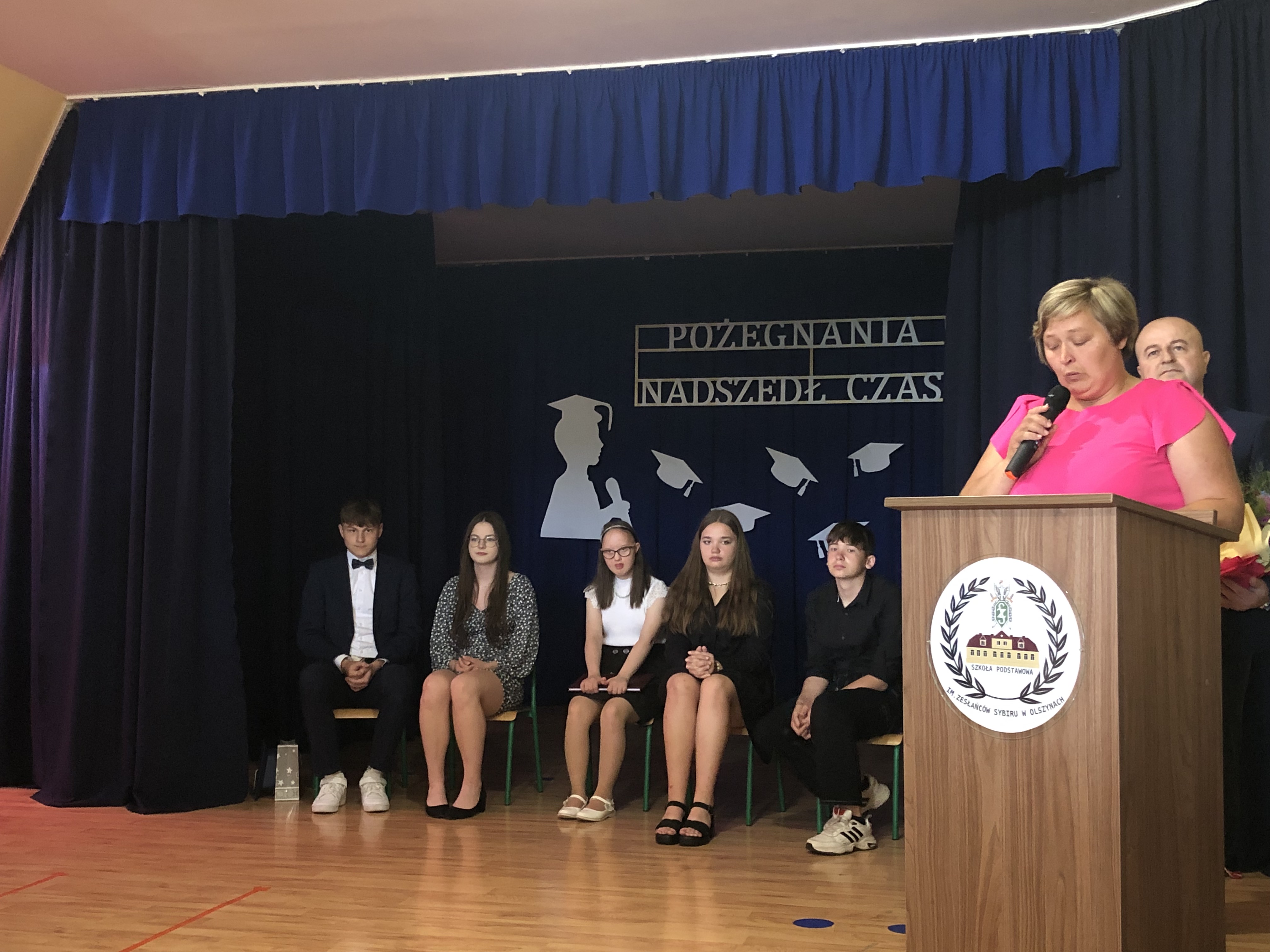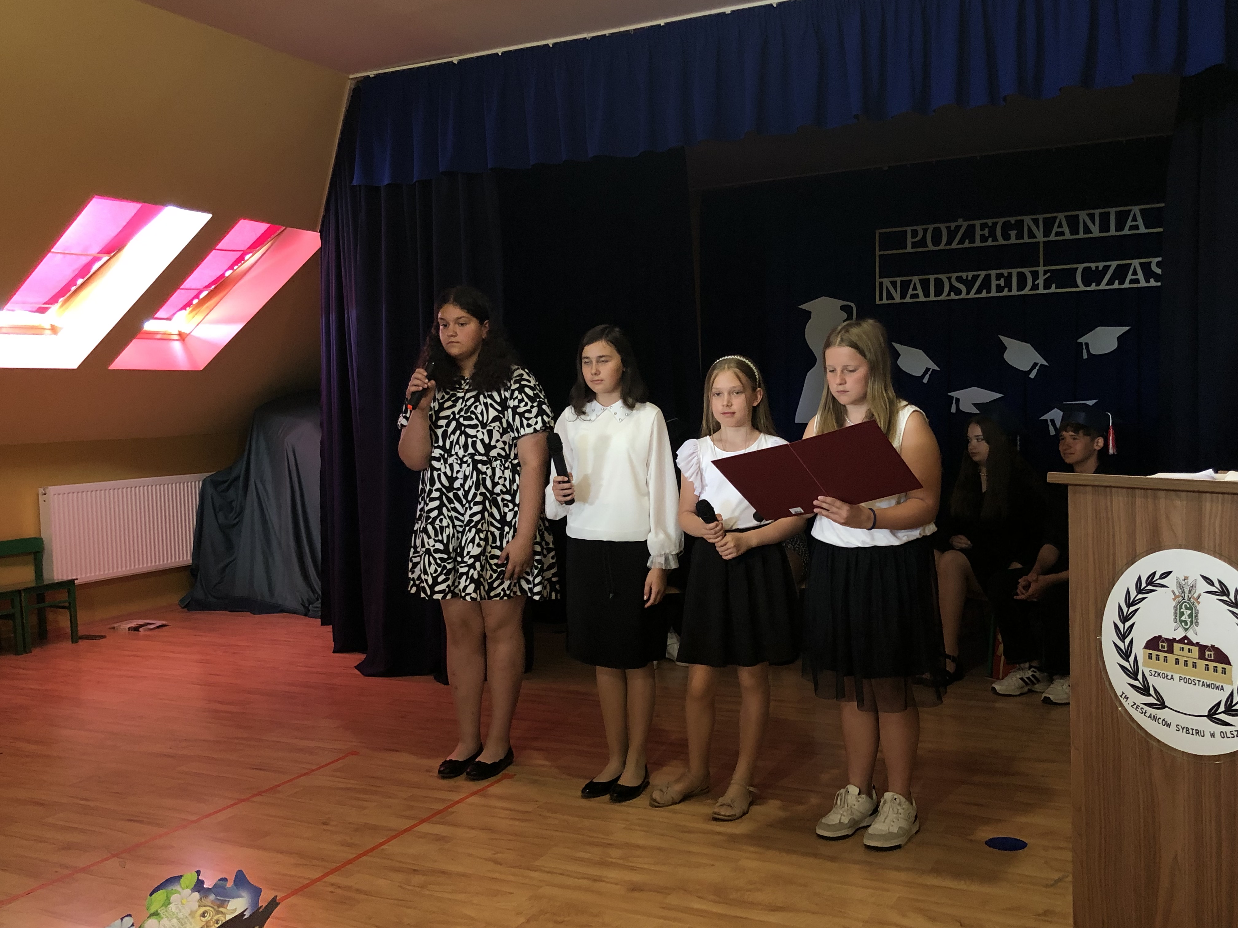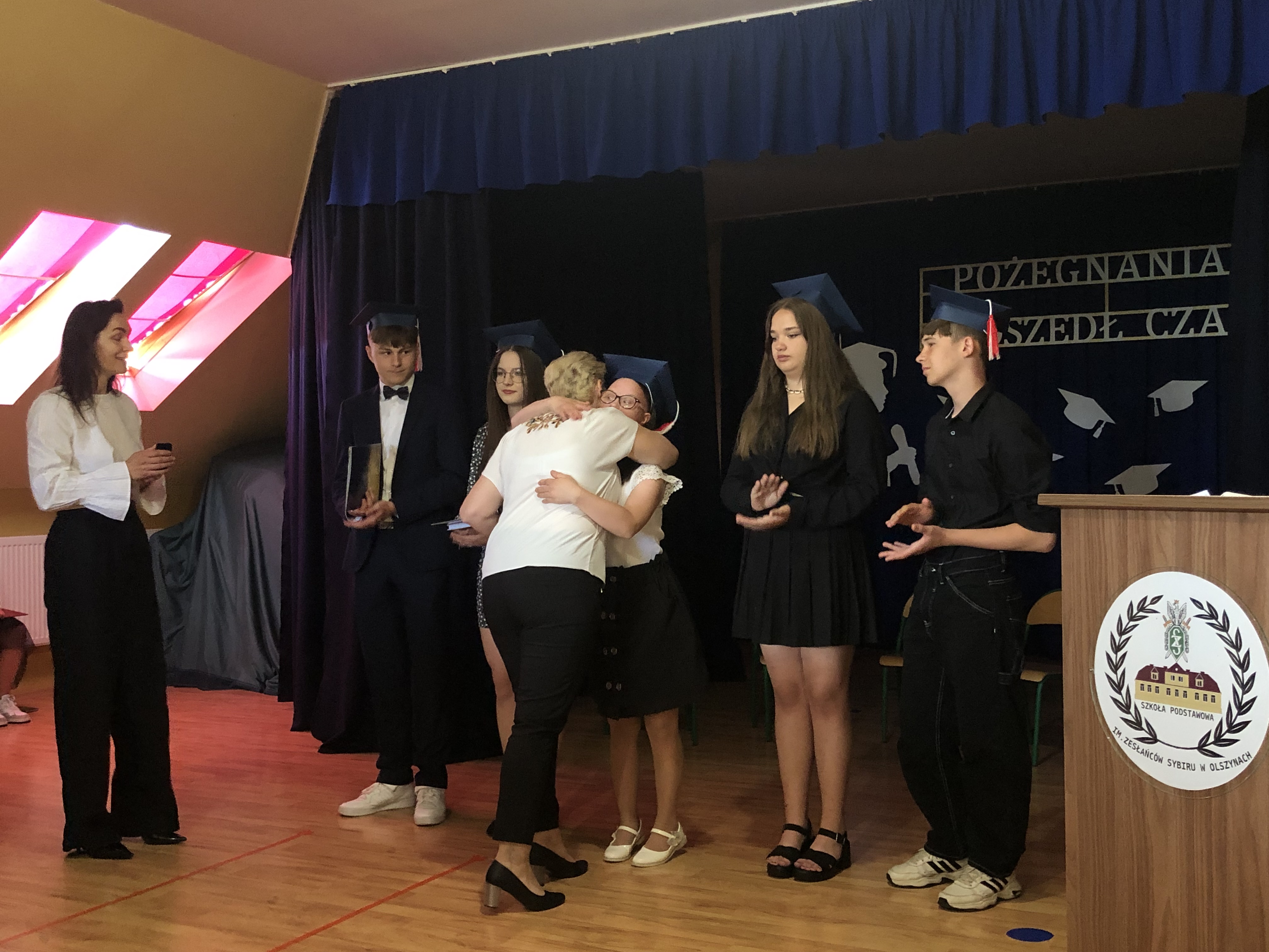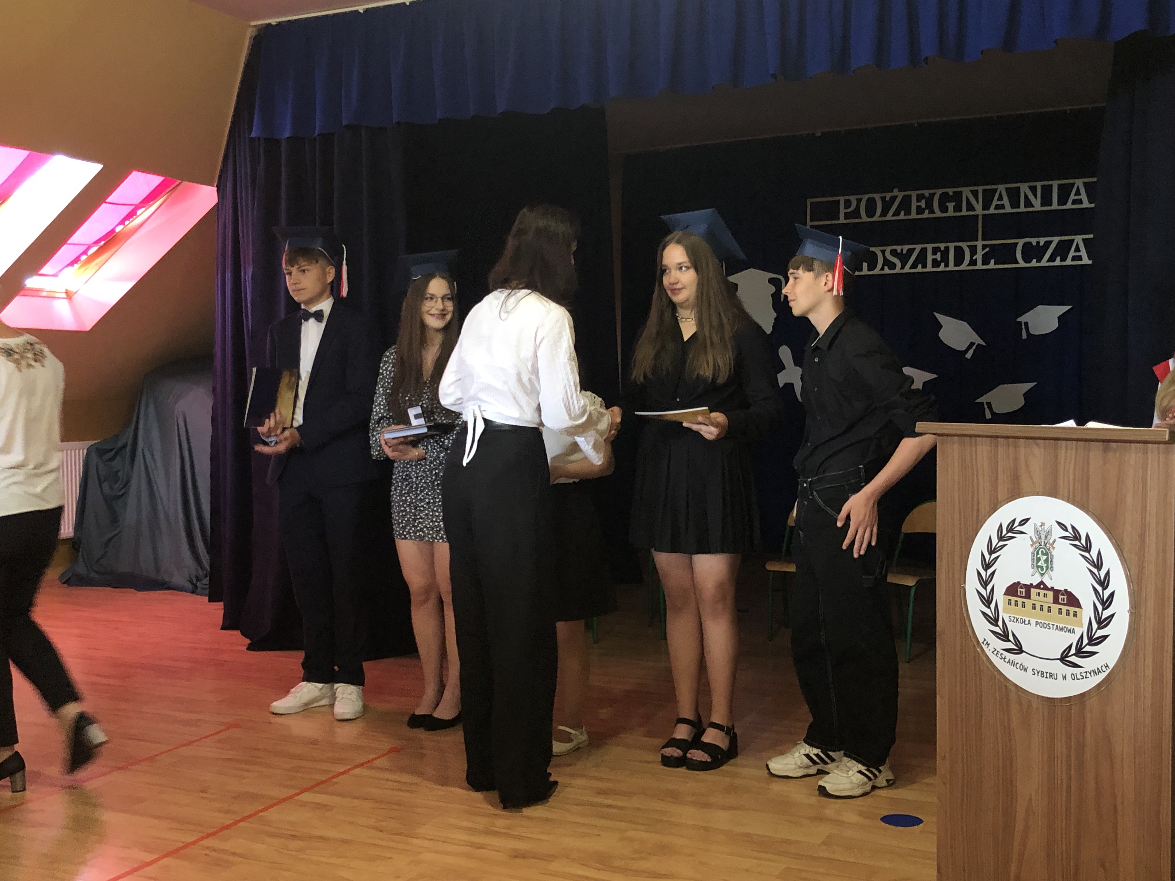 Nadszedł ten dzień.. w Szkole podstawowej w Olszynach oficjalnie zakończyliśmy rok szkolny 2023/2024. O 9 odbyła się uroczysta msza święta, a po niej apel. Społeczność Olszyn ma w swoim gronie mnóstwo uczniów wyróżniających się świetnymi wynikami w nauce, osiągnięciami sportowymi oraz wzorowym zachowaniem. Wielu uczniów wyróżniło się również wzorowa frekwencją. Było więc mnóstwo gratulacji, słów podziwu, uznania i podziękowań. Mury naszej szkoły żegnały także kolejna 8 klasę. Trudno było powstrzymać łzy wzruszenia. Każdy z naszych absolwentów zostawił w szkole ogromną cząstkę siebie, jednocześnie zabierając ze sobą w dalszą drogę mnóstwo wspaniałych wspomnień, i cennych doświadczeń. Rodzice naszych ósmoklasistów postarali się też o to by o nich nie zapomniano, robiąc wspólnie piękna ławkę, która zdobić będzie od dziś wejście do naszej szkoły. Po części oficjalnej grono pedagogiczne, nasi absolwenci oraz ich rodzice spędzili ostatnie wspólne chwile przy poczęstunku.