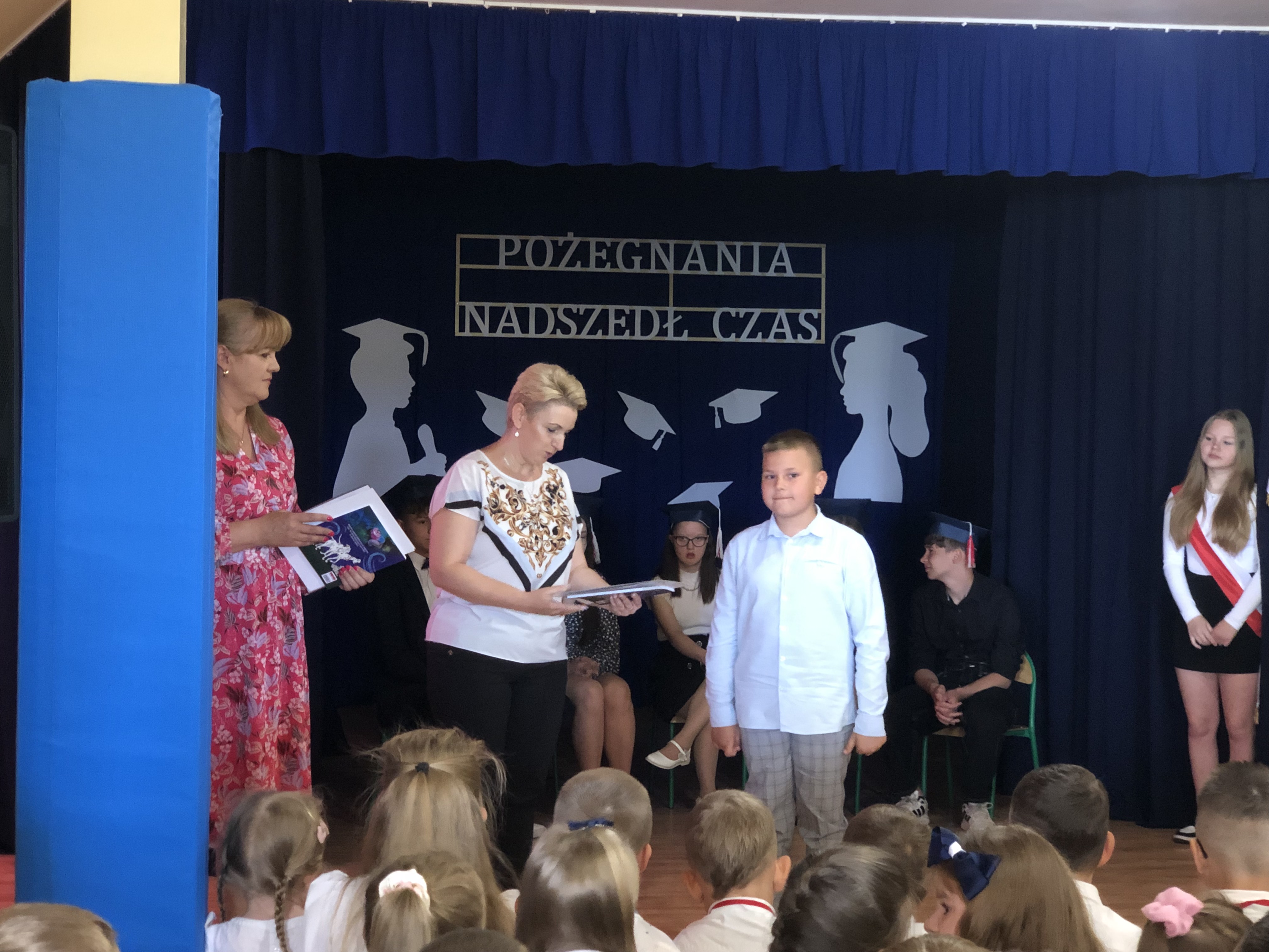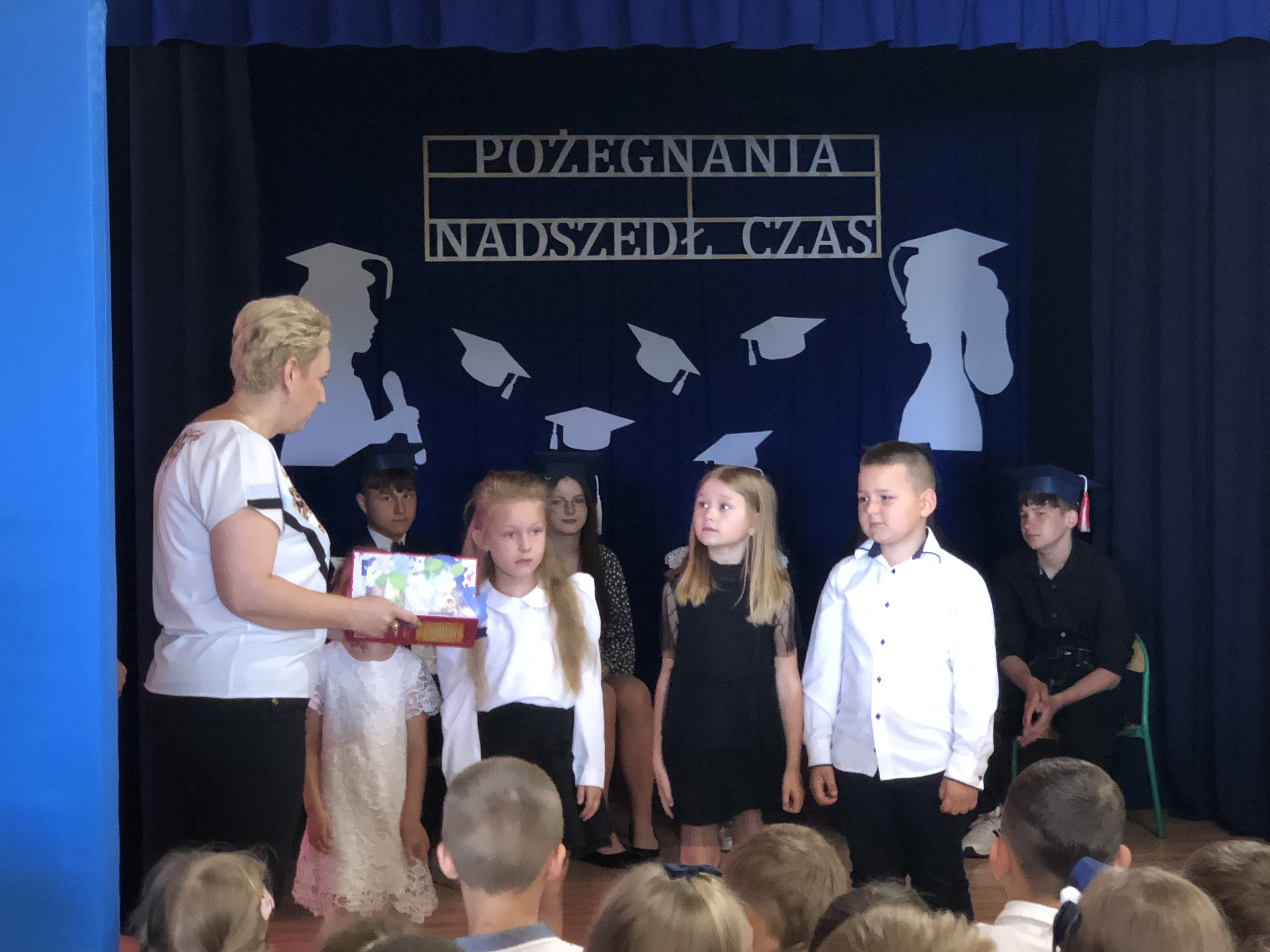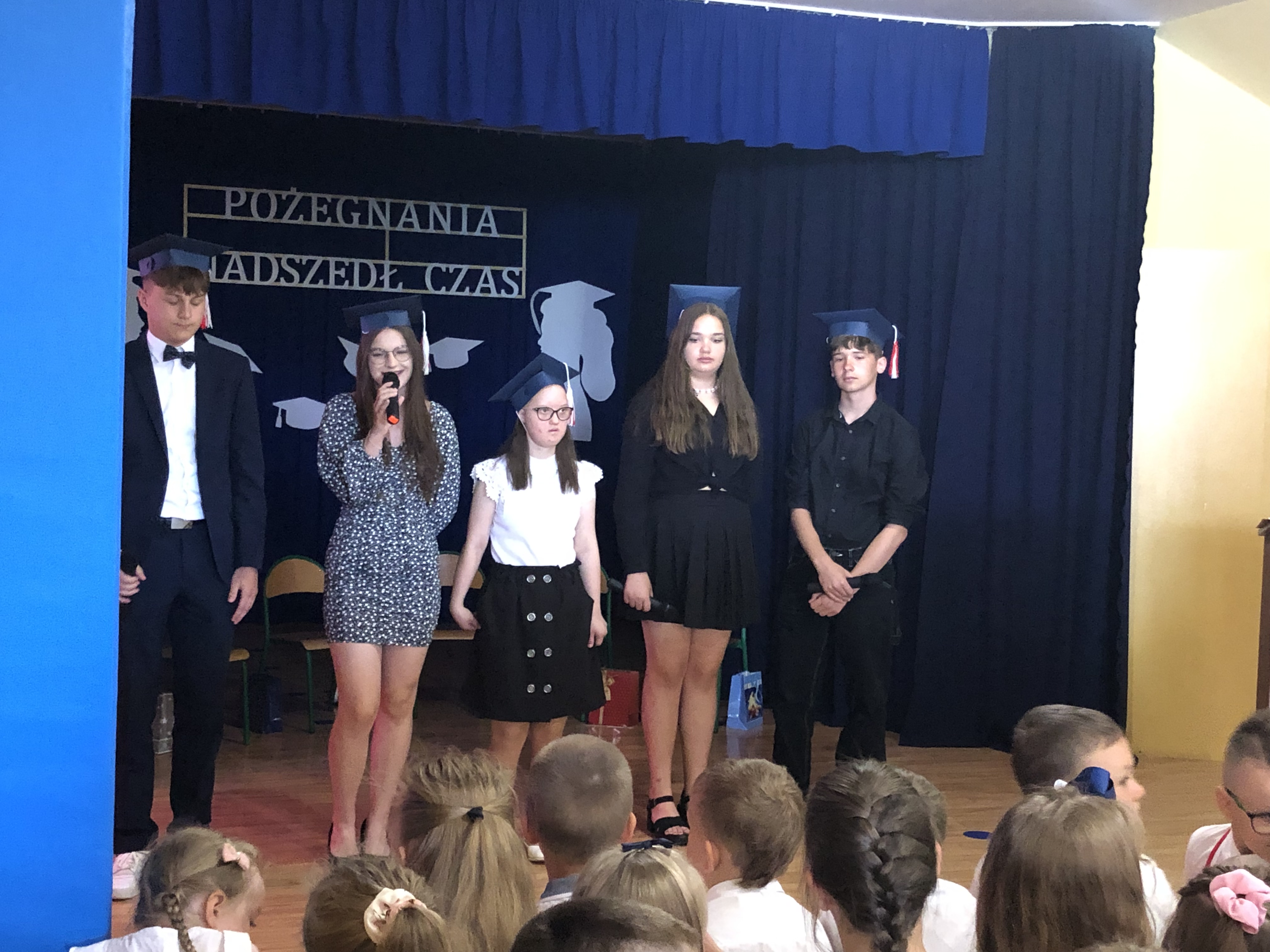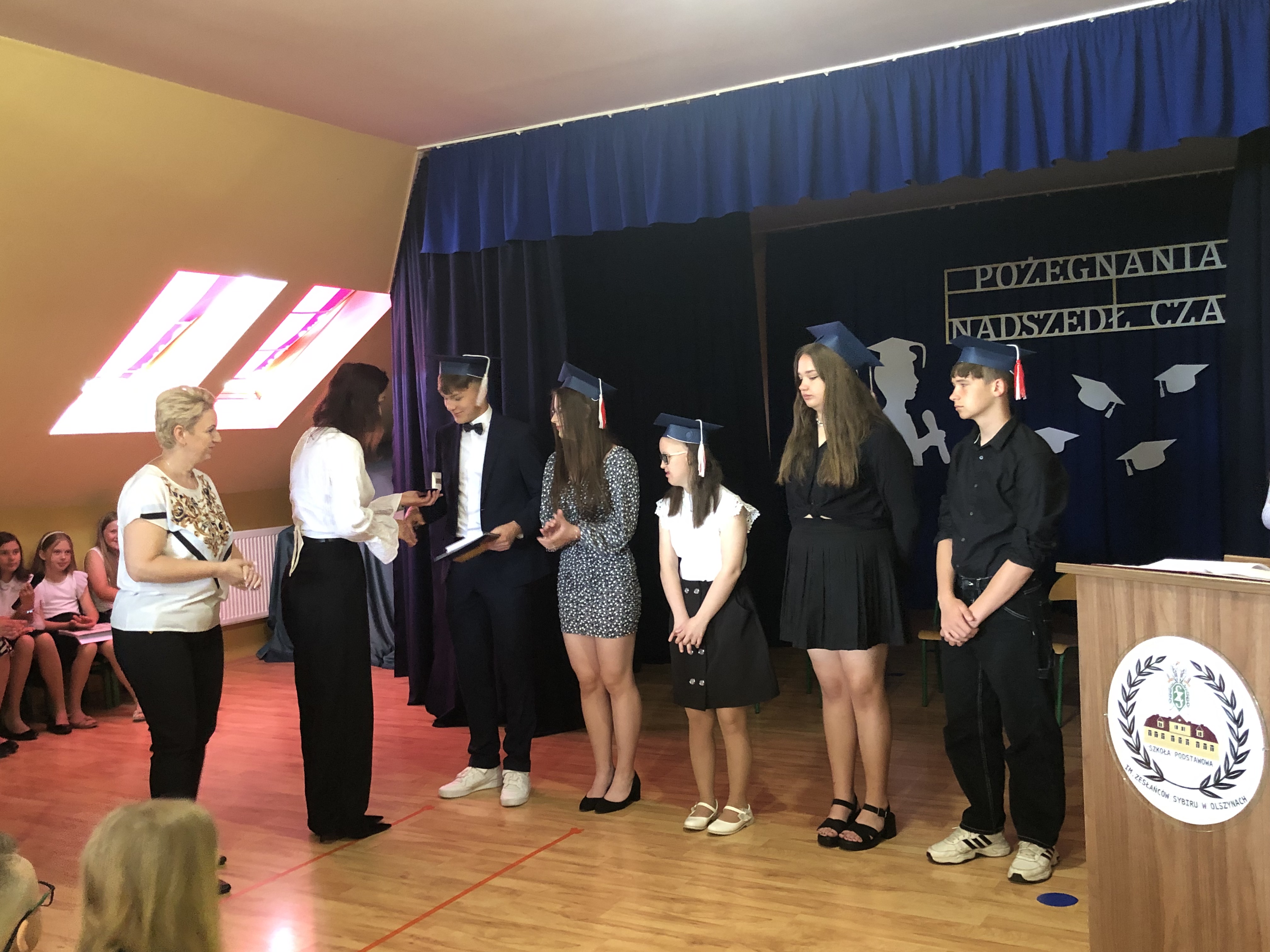 Nadszedł ten dzień.. w Szkole podstawowej w Olszynach oficjalnie zakończyliśmy rok szkolny 2023/2024. O 9 odbyła się uroczysta msza święta, a po niej apel. Społeczność Olszyn ma w swoim gronie mnóstwo uczniów wyróżniających się świetnymi wynikami w nauce, osiągnięciami sportowymi oraz wzorowym zachowaniem. Wielu uczniów wyróżniło się również wzorowa frekwencją. Było więc mnóstwo gratulacji, słów podziwu, uznania i podziękowań. Mury naszej szkoły żegnały także kolejna 8 klasę. Trudno było powstrzymać łzy wzruszenia. Każdy z naszych absolwentów zostawił w szkole ogromną cząstkę siebie, jednocześnie zabierając ze sobą w dalszą drogę mnóstwo wspaniałych wspomnień, i cennych doświadczeń. Rodzice naszych ósmoklasistów postarali się też o to by o nich nie zapomniano, robiąc wspólnie piękna ławkę, która zdobić będzie od dziś wejście do naszej szkoły. Po części oficjalnej grono pedagogiczne, nasi absolwenci oraz ich rodzice spędzili ostatnie wspólne chwile przy poczęstunku.