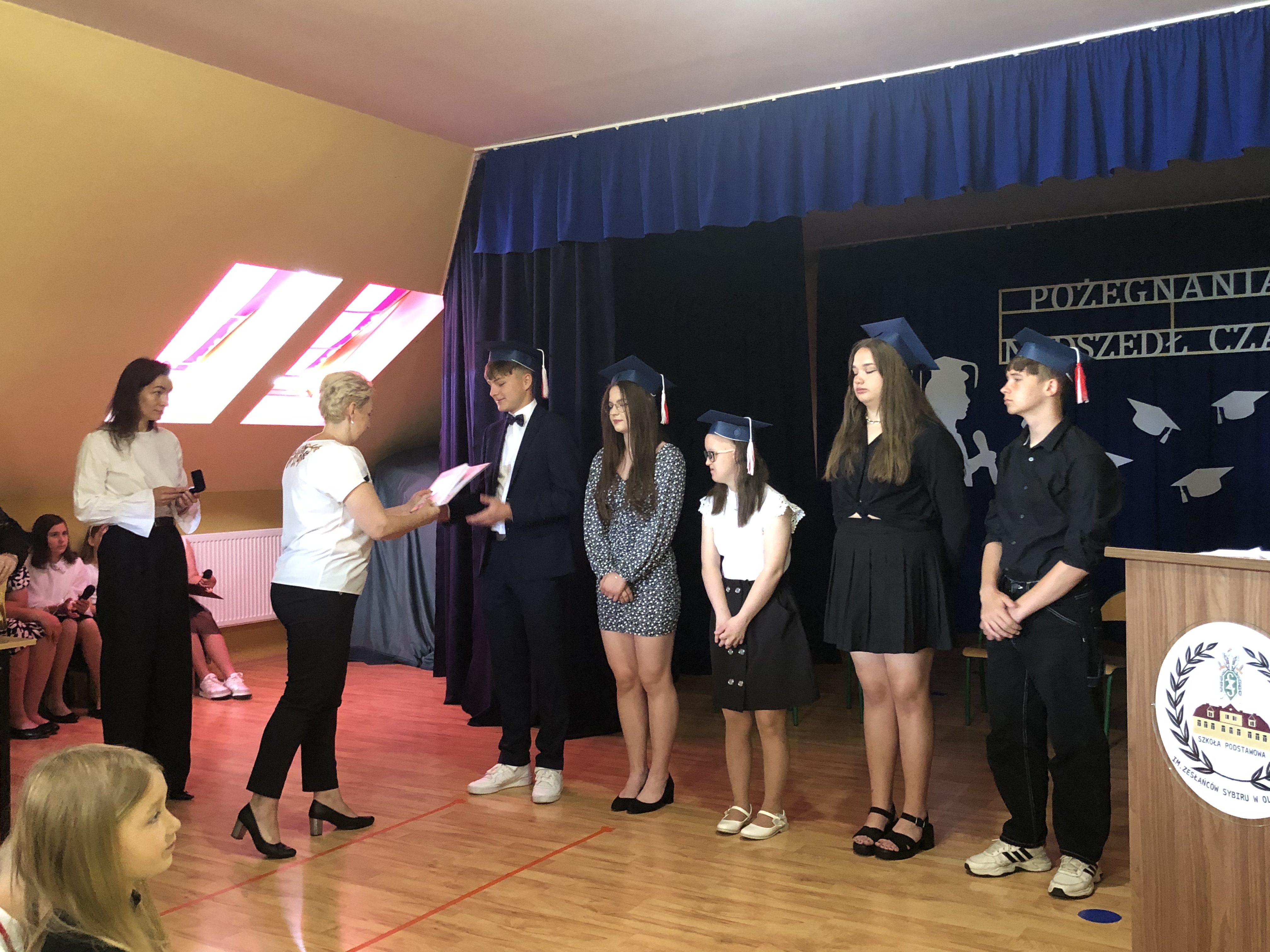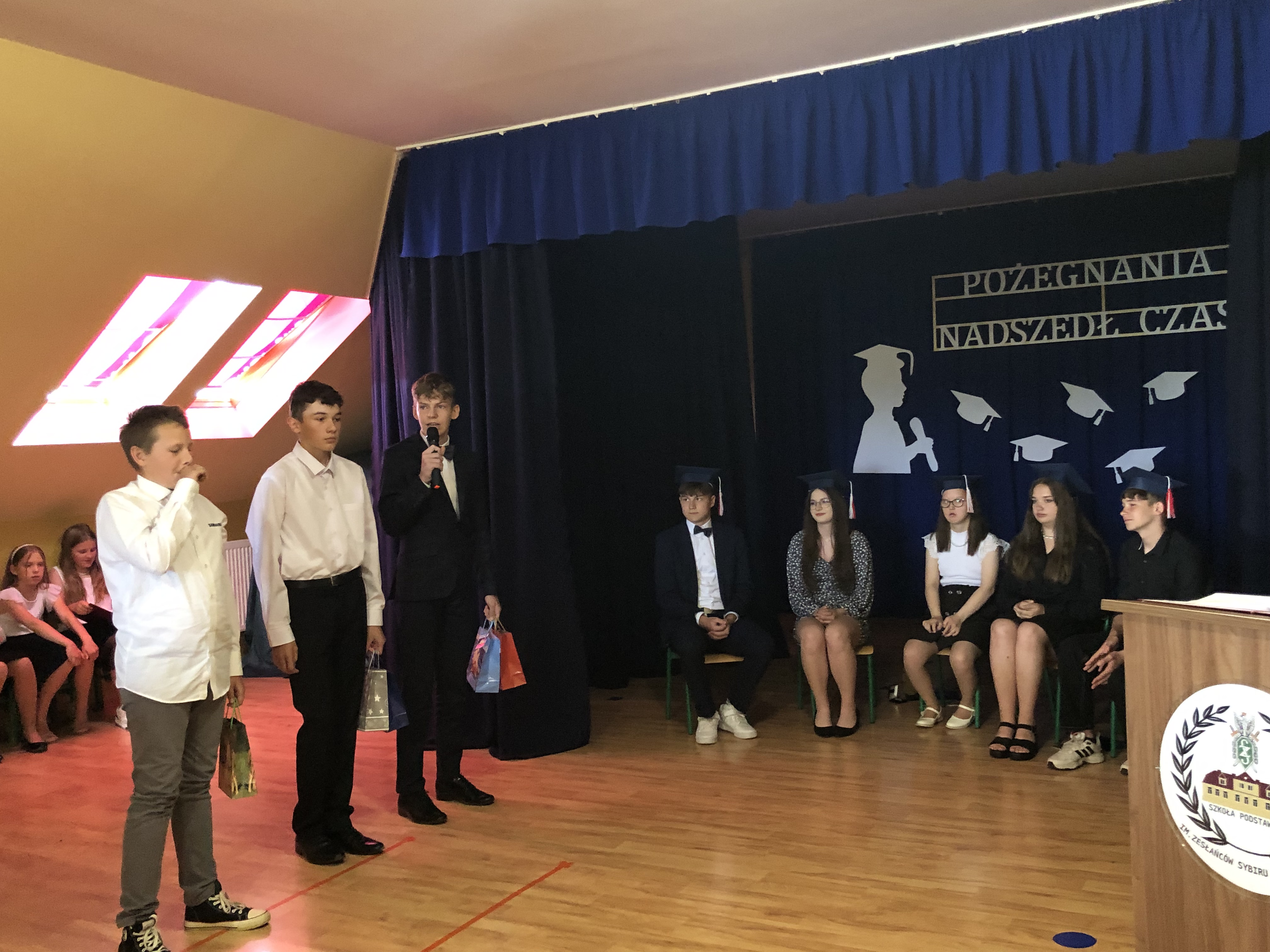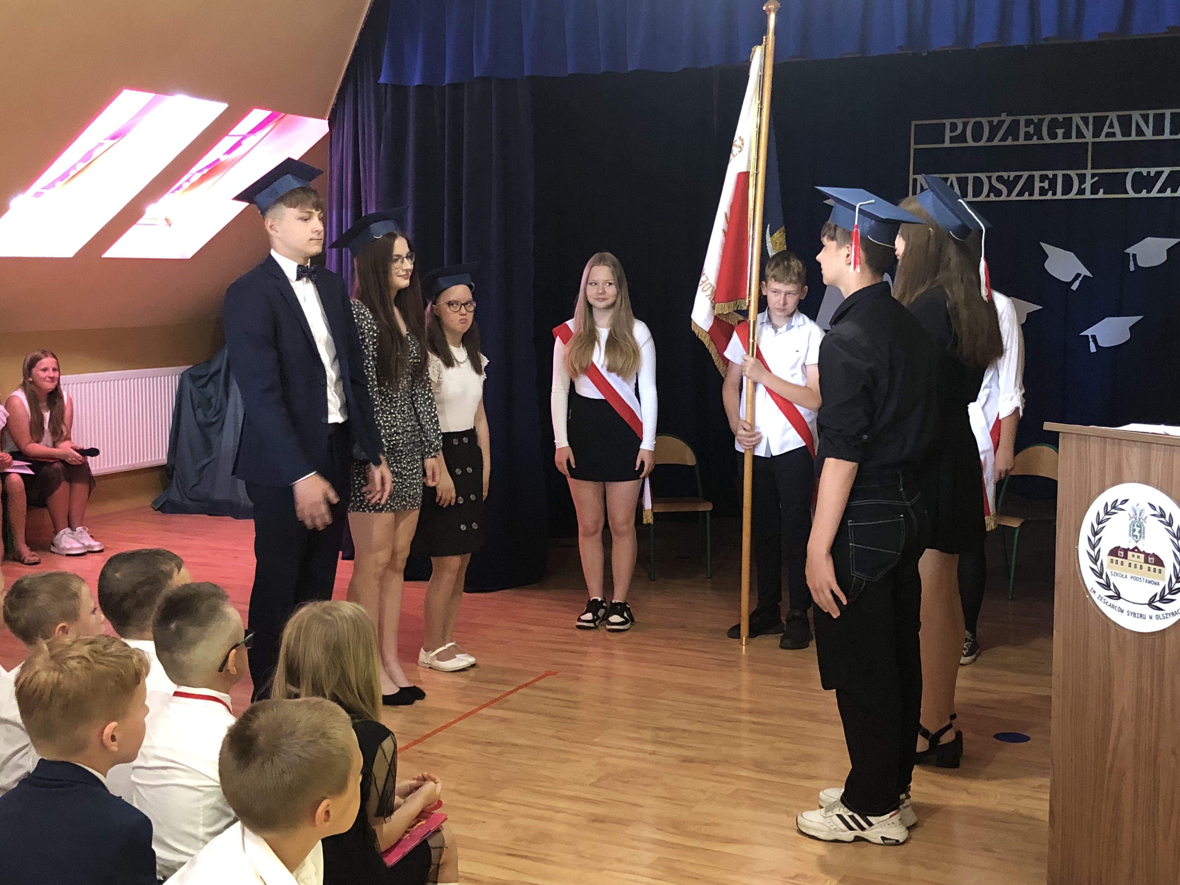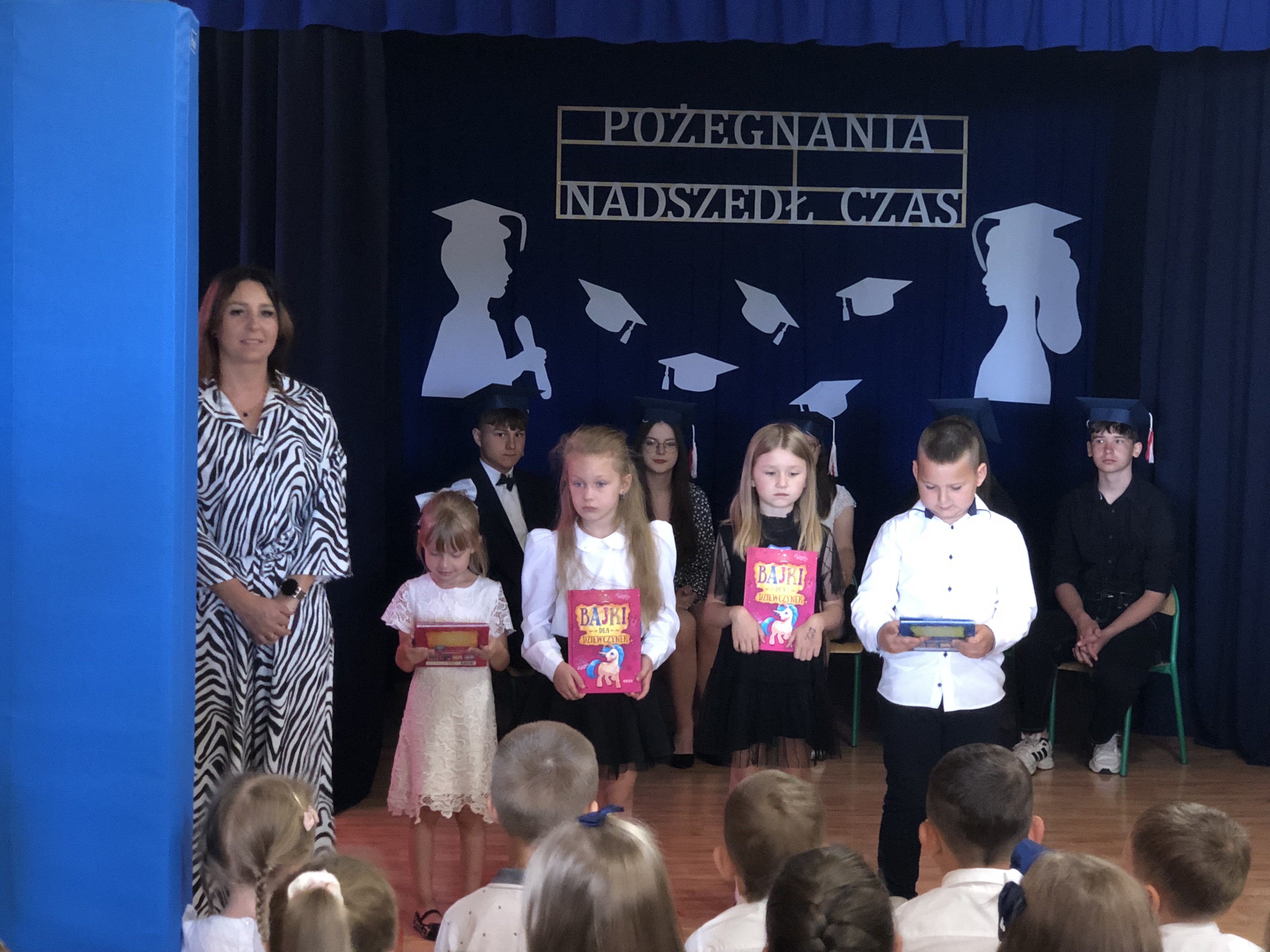 Nadszedł ten dzień.. w Szkole podstawowej w Olszynach oficjalnie zakończyliśmy rok szkolny 2023/2024. O 9 odbyła się uroczysta msza święta, a po niej apel. Społeczność Olszyn ma w swoim gronie mnóstwo uczniów wyróżniających się świetnymi wynikami w nauce, osiągnięciami sportowymi oraz wzorowym zachowaniem. Wielu uczniów wyróżniło się również wzorowa frekwencją. Było więc mnóstwo gratulacji, słów podziwu, uznania i podziękowań. Mury naszej szkoły żegnały także kolejna 8 klasę. Trudno było powstrzymać łzy wzruszenia. Każdy z naszych absolwentów zostawił w szkole ogromną cząstkę siebie, jednocześnie zabierając ze sobą w dalszą drogę mnóstwo wspaniałych wspomnień, i cennych doświadczeń. Rodzice naszych ósmoklasistów postarali się też o to by o nich nie zapomniano, robiąc wspólnie piękna ławkę, która zdobić będzie od dziś wejście do naszej szkoły. Po części oficjalnej grono pedagogiczne, nasi absolwenci oraz ich rodzice spędzili ostatnie wspólne chwile przy poczęstunku.