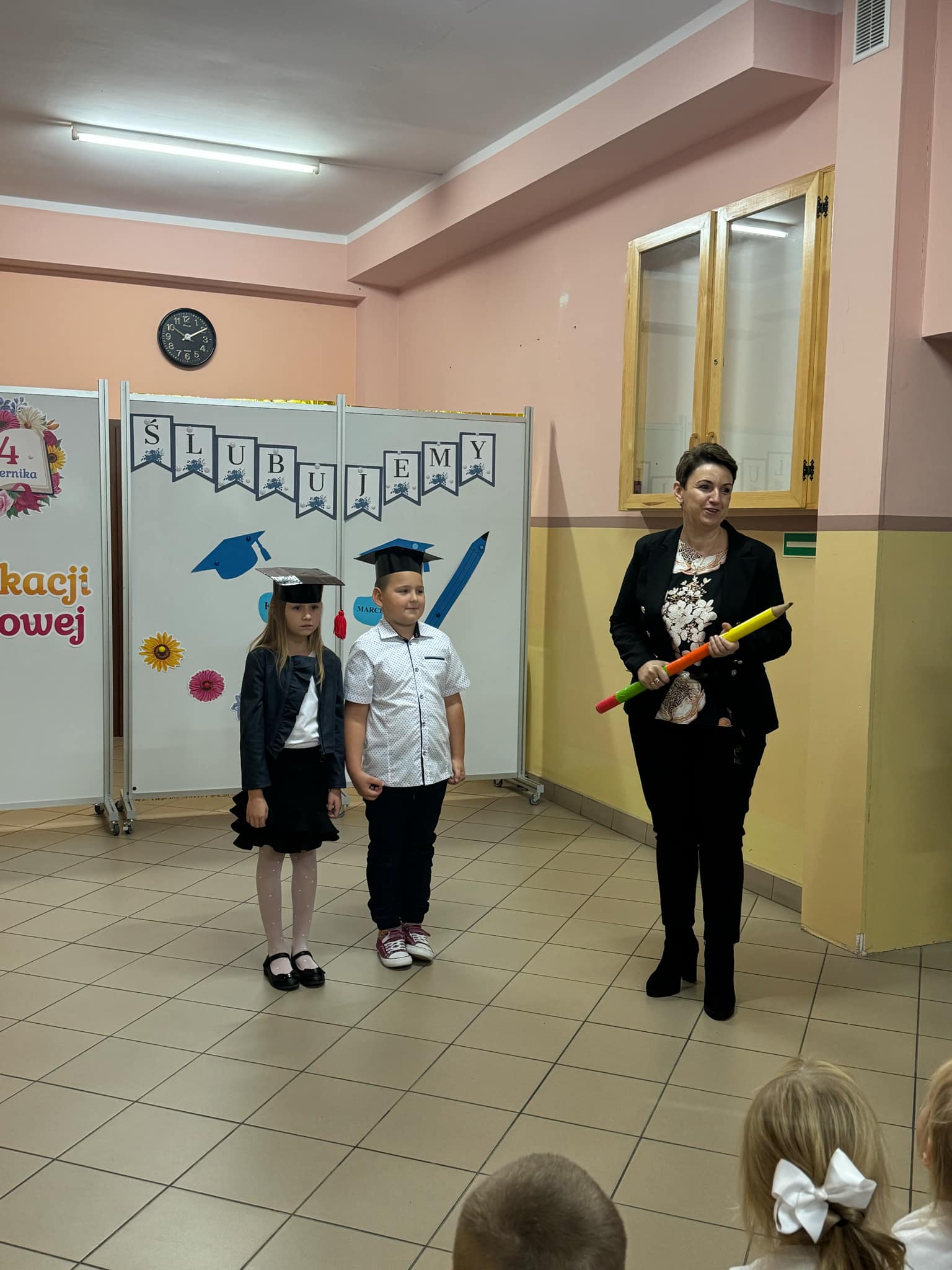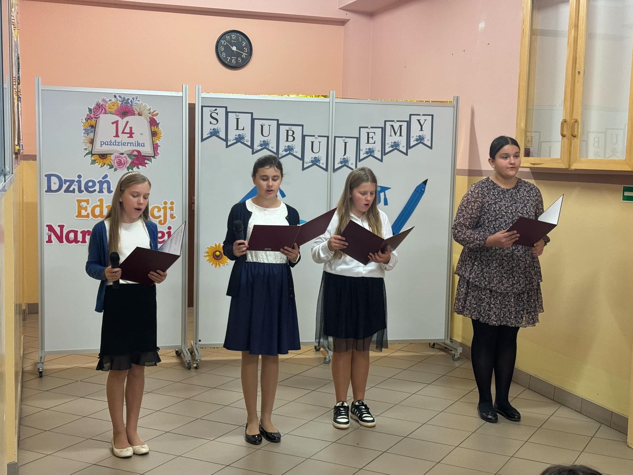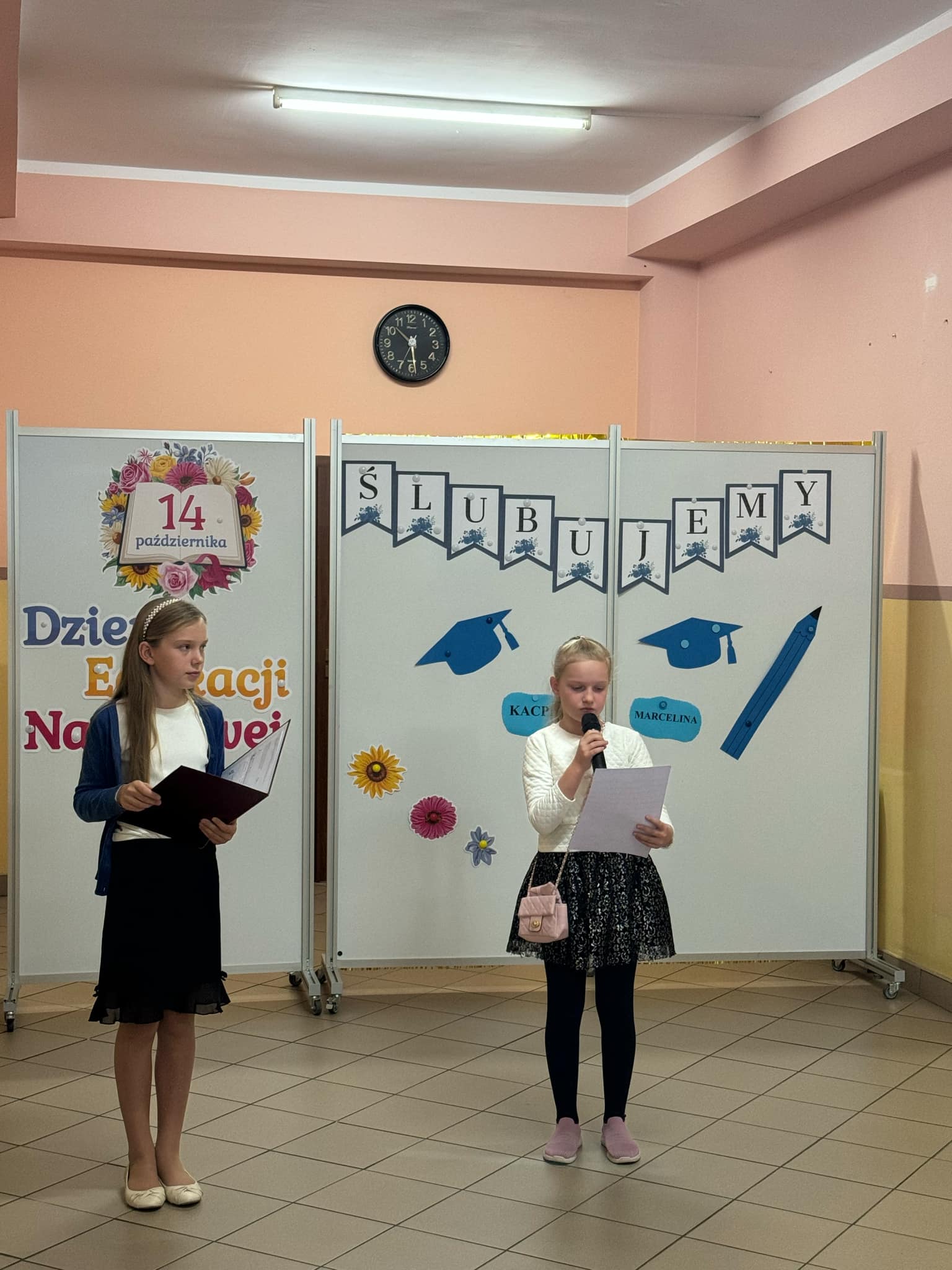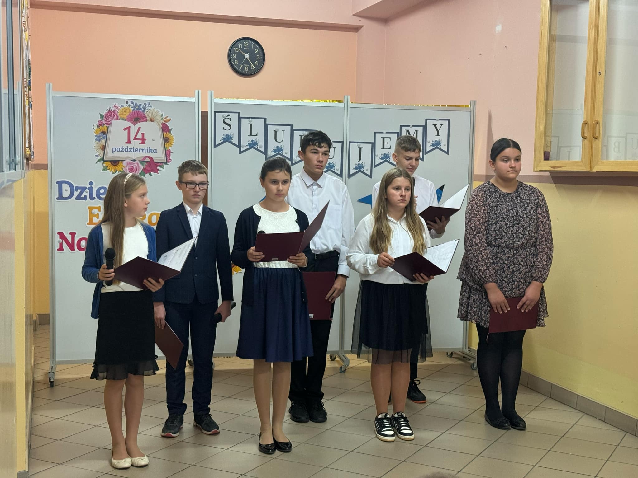 14 października w naszej szkole świętowaliśmy Dzień Edukacji Narodowej połączony ze ślubowaniem uczniów klasy pierwszej. Wspaniałe występy, które przygotowali nasi uczniowie, zostaną w naszej pamięci na długo. Były również podziękowania, kwiaty i chwile wzruszeń. Pani Dyrektor wyróżniła kilkoro nauczycieli za ich zaangażowanie i wkład w życie szkoły. Dodatkowo Samorząd Uczniowski zorganizował Galę Oskarów - wszyscy nauczyciele i pracownicy szkoły otrzymali tytuły na podstawie wcześniej przeprowadzonej wśród uczniów ankiety. To był piękny i pełen wspaniałych emocji dzień.