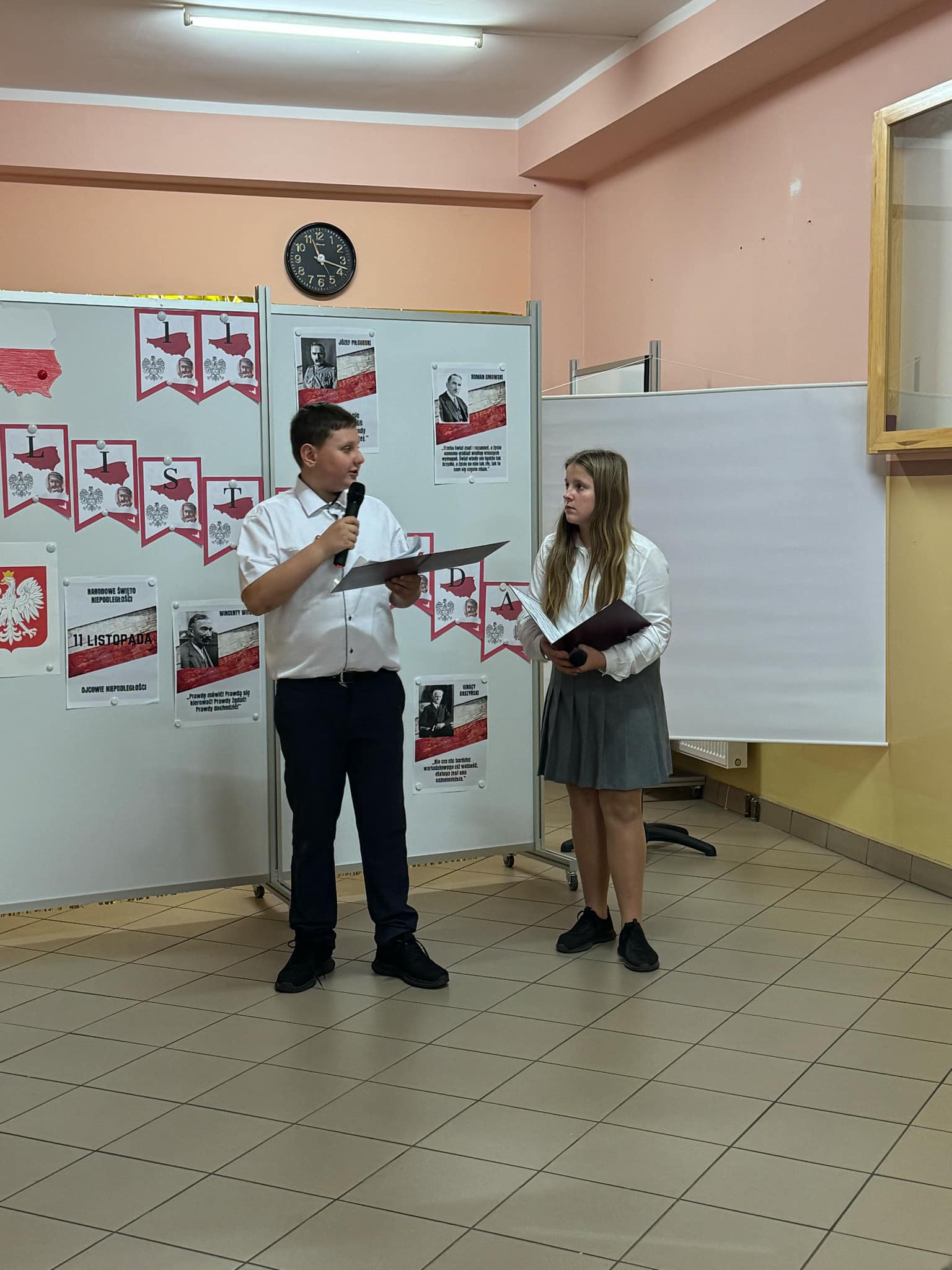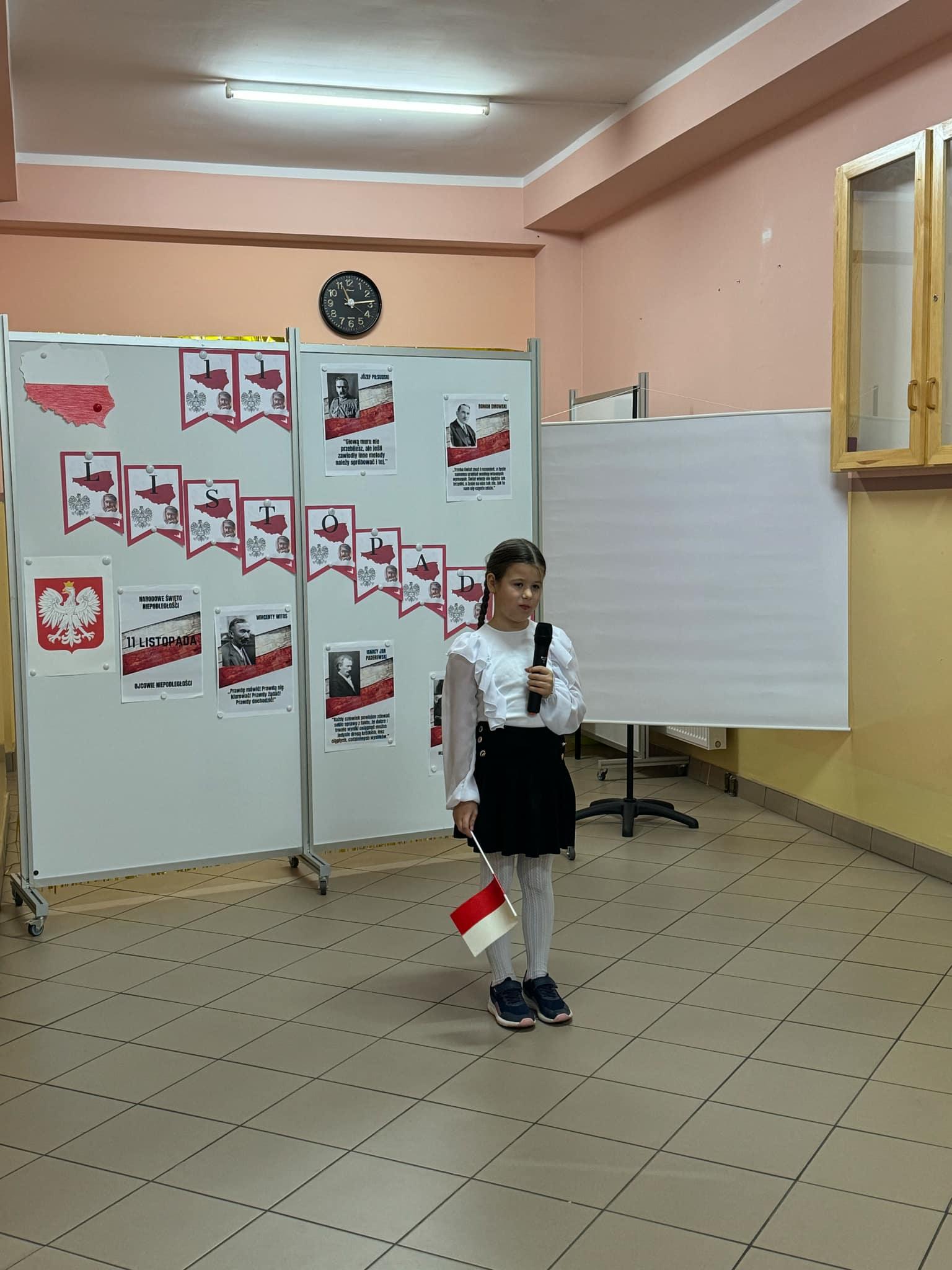 Dnia 8 listopada uczniowie klasy VI zaprezentowali uroczystą akademię z okazji Narodowego Święta Niepodległości. Wydarzenie to miało na celu przypomnienie uczniom i nauczycielom o trudnej drodze, jaką Polska przeszła, by odzyskać wolność po 123 latach zaborów. Program artystyczny składał się z poruszających wierszy i pieśni patriotycznych, takich jak „Mazurek Dąbrowskiego” czy „Rota”. Młodzi artyści wcielili się w postaci historyczne, przedstawiając wydarzenia z czasów rozbiorów i walki o niepodległość. Dekoracje w barwach narodowych oraz symbole patriotyczne, takie jak biało-czerwone flagi, godło i portret Józefa Piłsudskiego, stworzyły odpowiedni nastrój do refleksji nad historią naszej ojczyzny. Akademia była nie tylko okazją do uczczenia pamięci bohaterów, którzy oddali życie za wolność Polski, ale także do wspólnego przeżywania dumy z bycia Polakami. Było to wydarzenie, które na długo pozostanie w pamięci społeczności szkolnej, przypominając o wartości wolności i patriotyzmu.