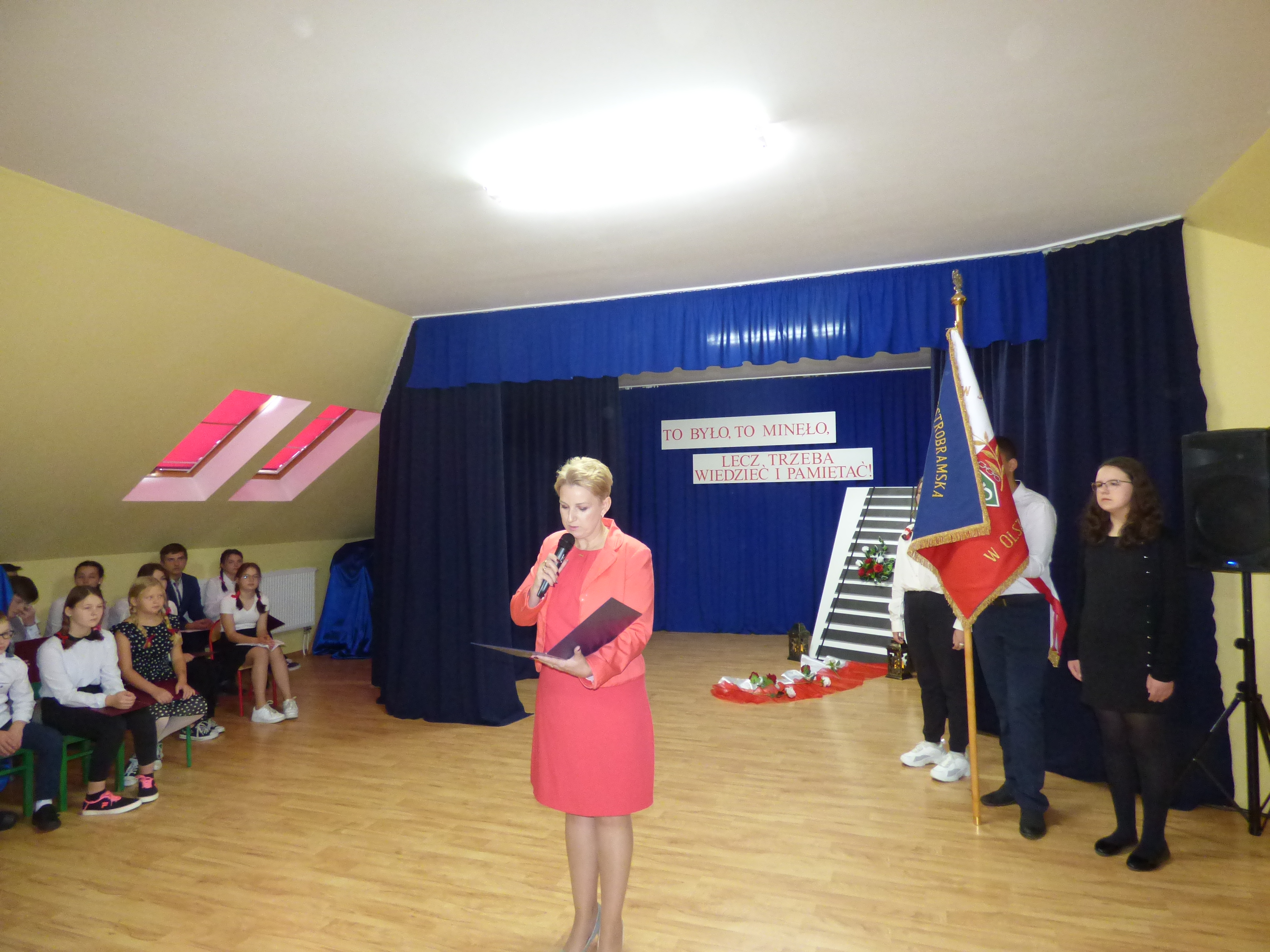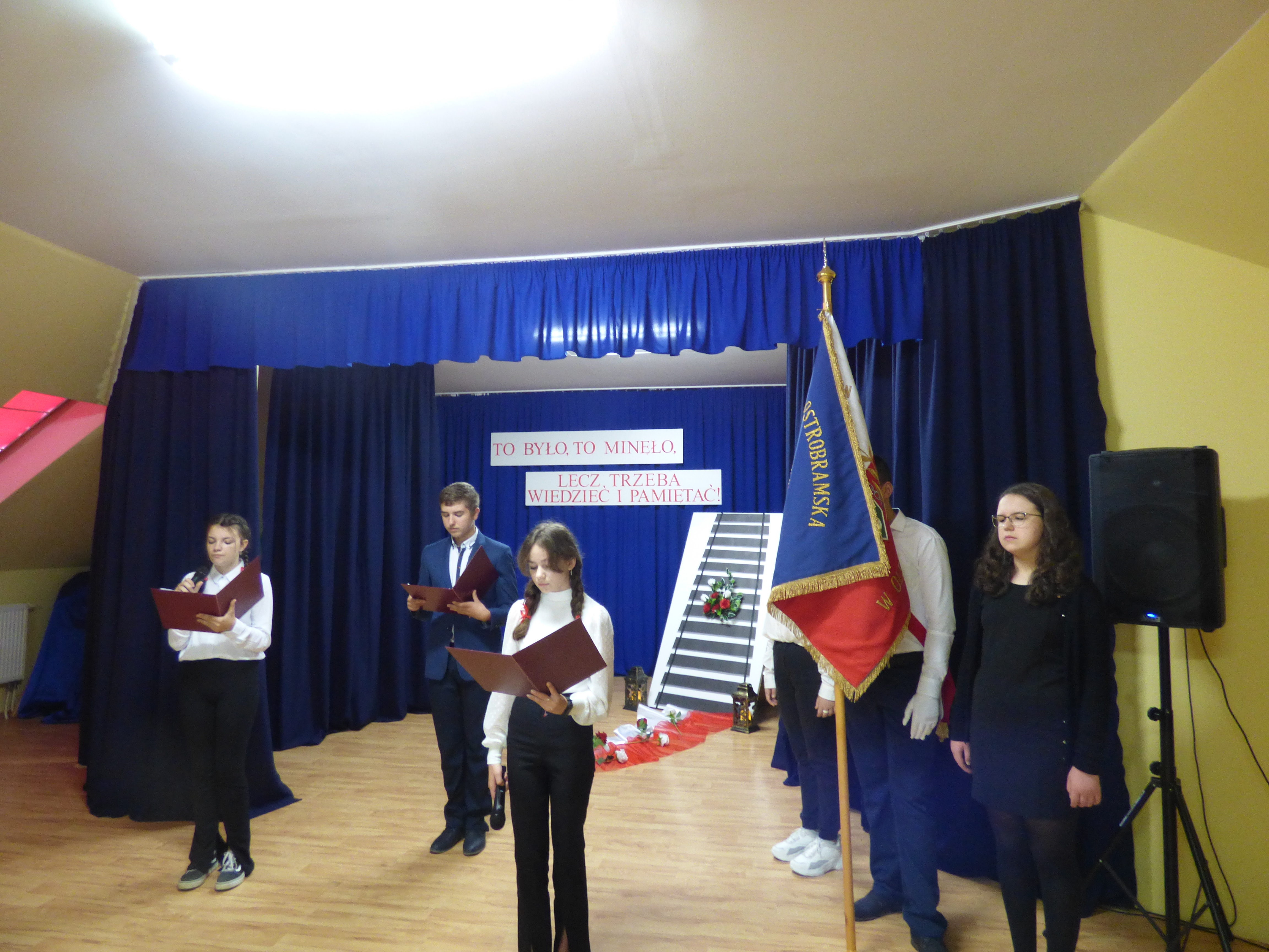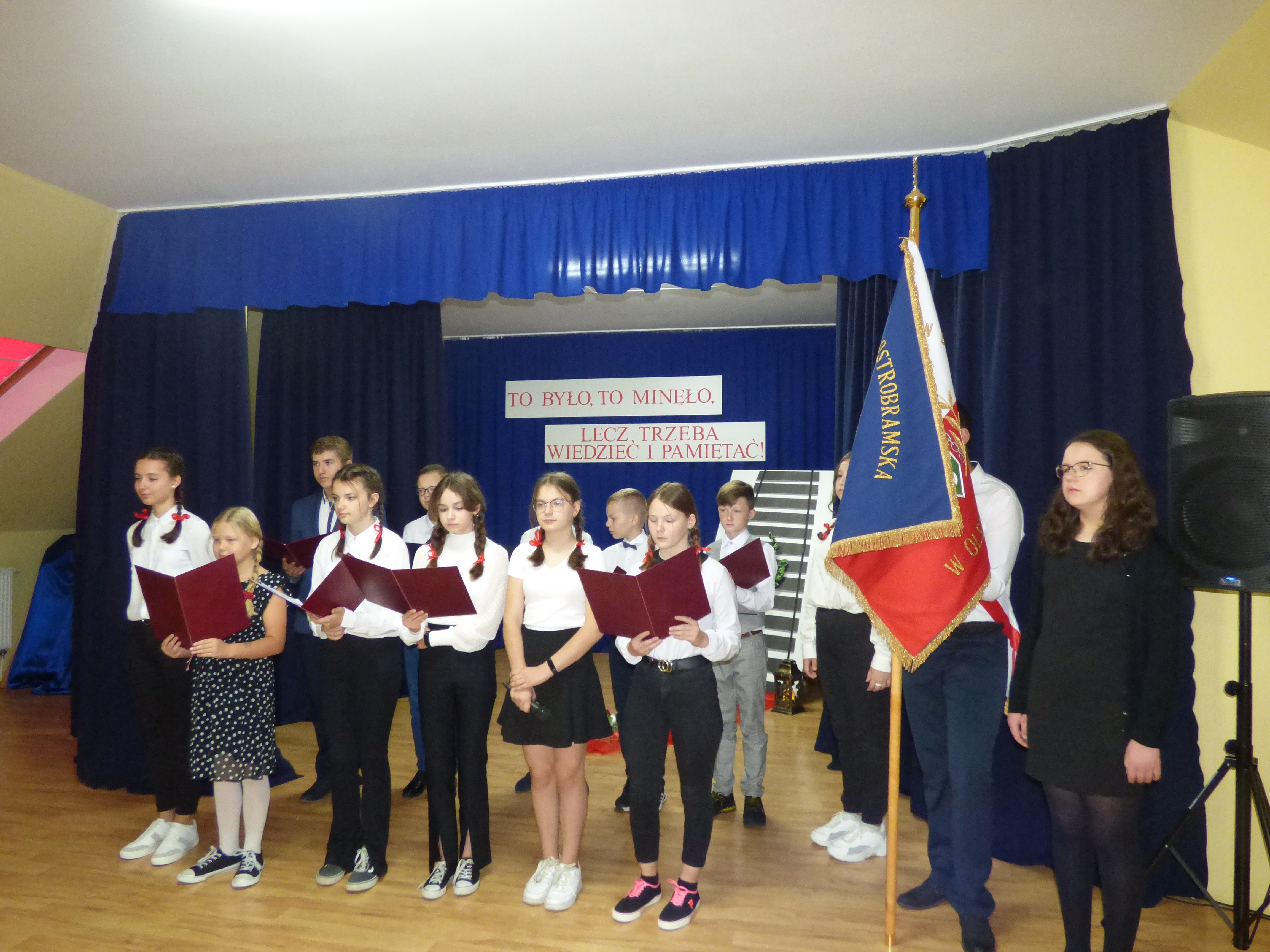 Z tej okazji uczniowie pod kierunkiem nauczycieli przygotowali uroczystą akademię. Zostały na niej przybliżone trudne losy Sybiraków. W programie nie zabrakło wzruszających pieśni, wierszy oraz wspomnień obecnych gości: Pani Danuty Pieńkowskiej-Wolfart, Pani Ireny Boryszewskiej oraz Pana Zygmunta Kortowskiego. Całą uroczystość uświetnił krótki koncert patriotyczny w wykonaniu tercetu pod kierunkiem ks. Kazimierza Ostrowskiego.